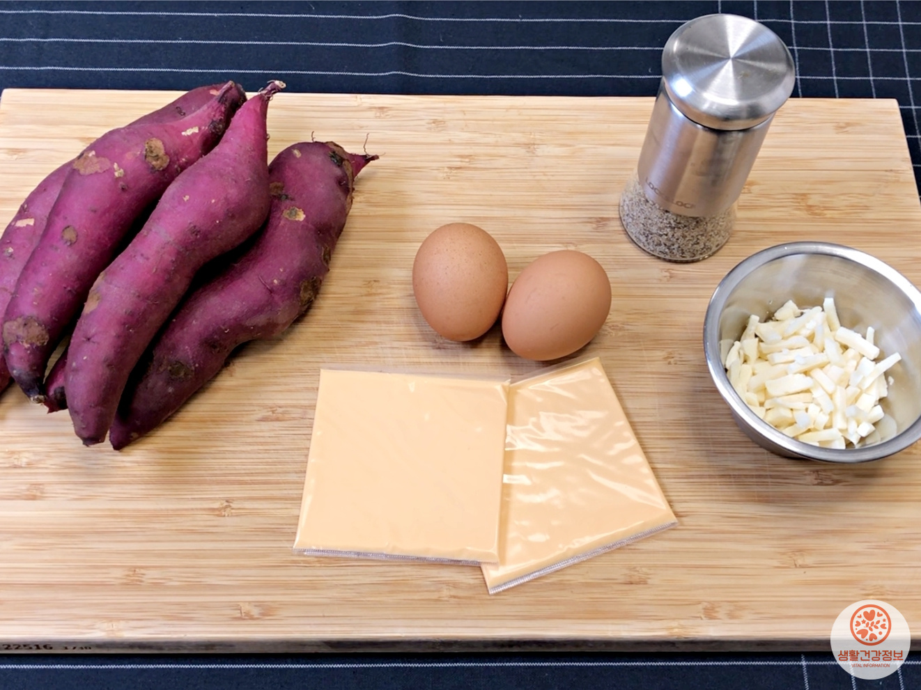 재료는 고구마, 계란, 치즈, 허브솔트 준비했어요.