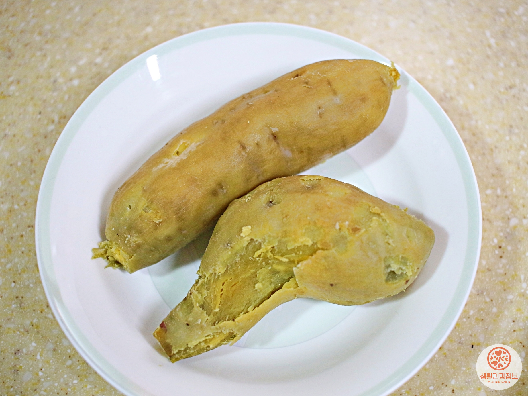 고구마는 껍질을 벗겨내고 삶아주세요.