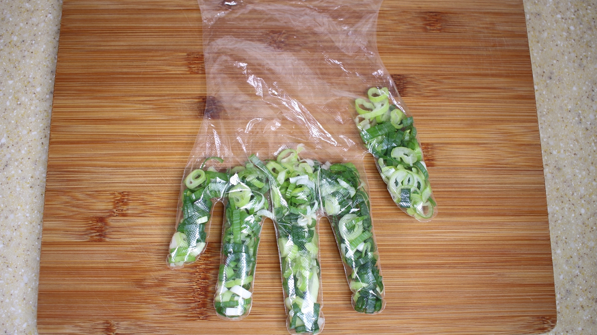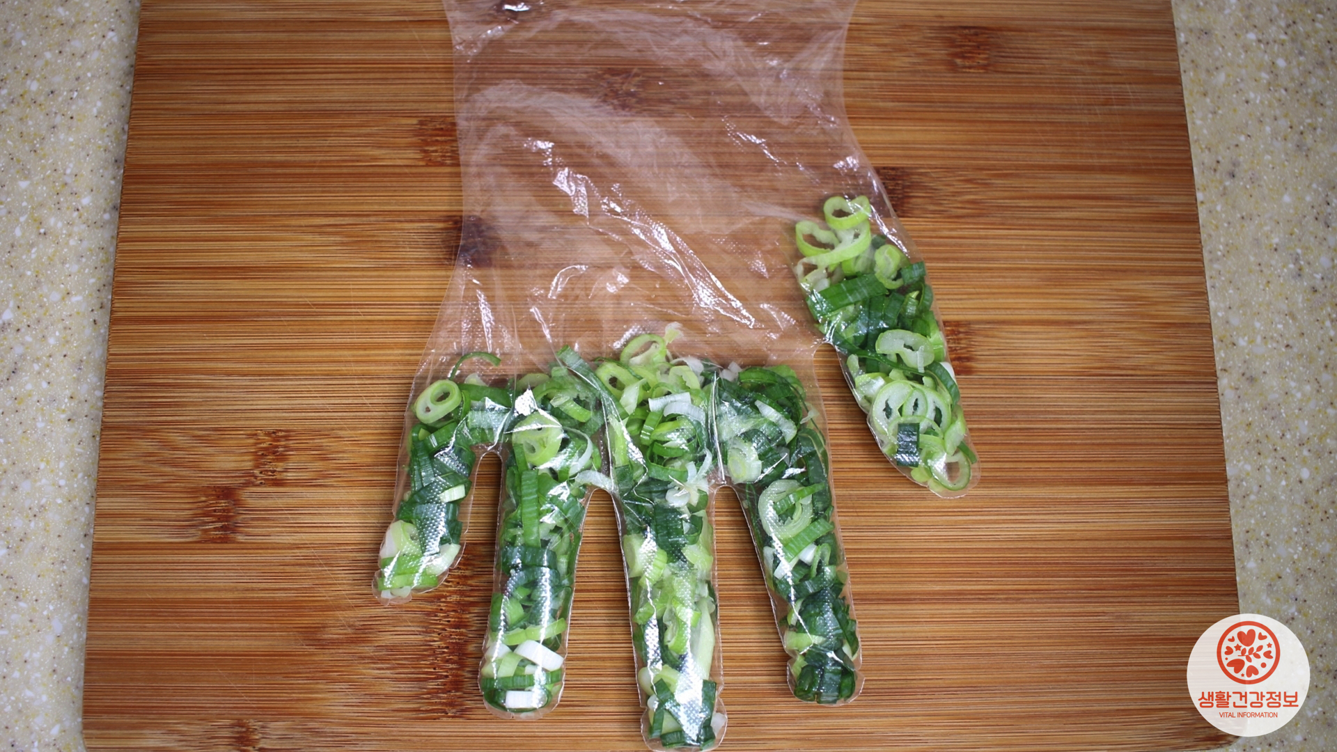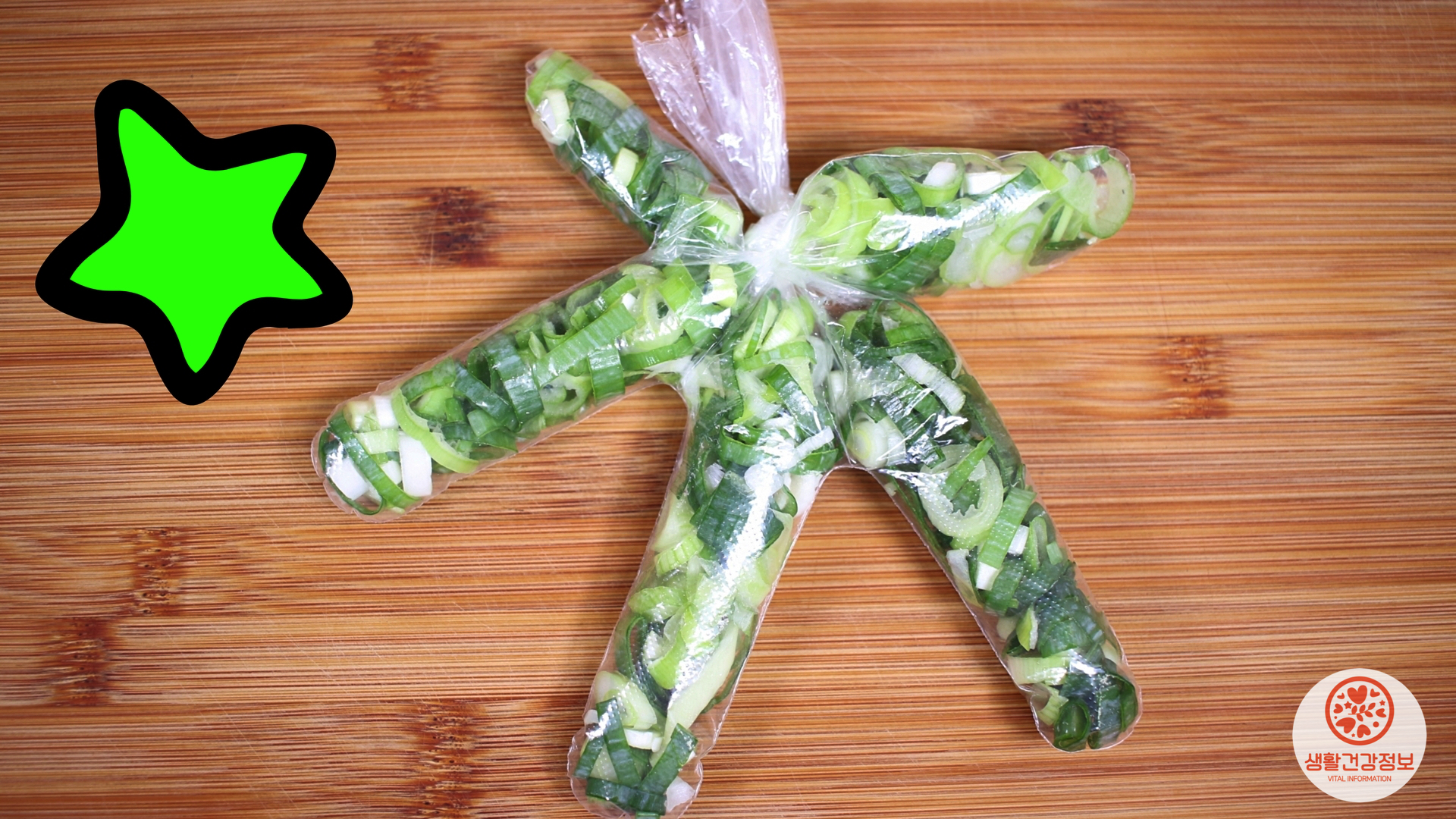 대파를 비닐장갑에 넣어서 보관하는 방법이에요.