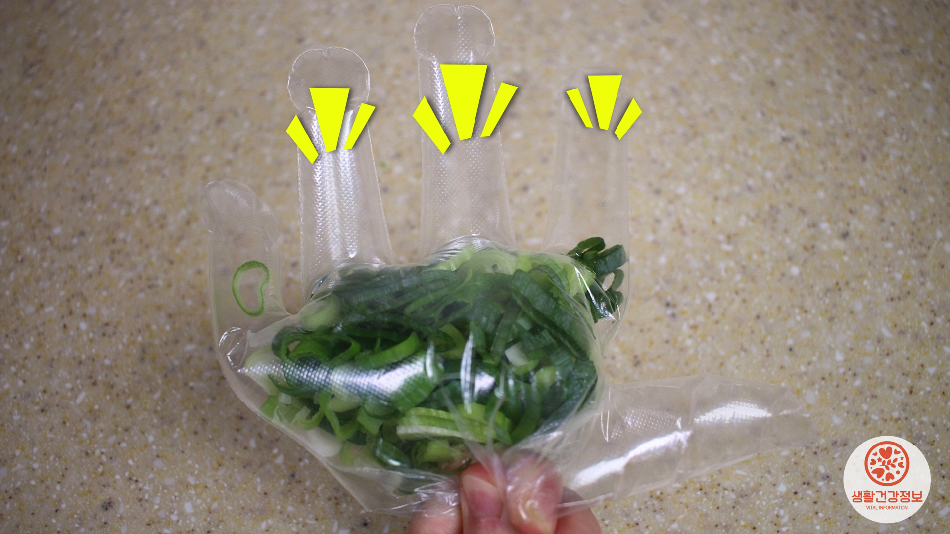 대파를 비닐장갑에 넣어서 보관하는 방법이에요.