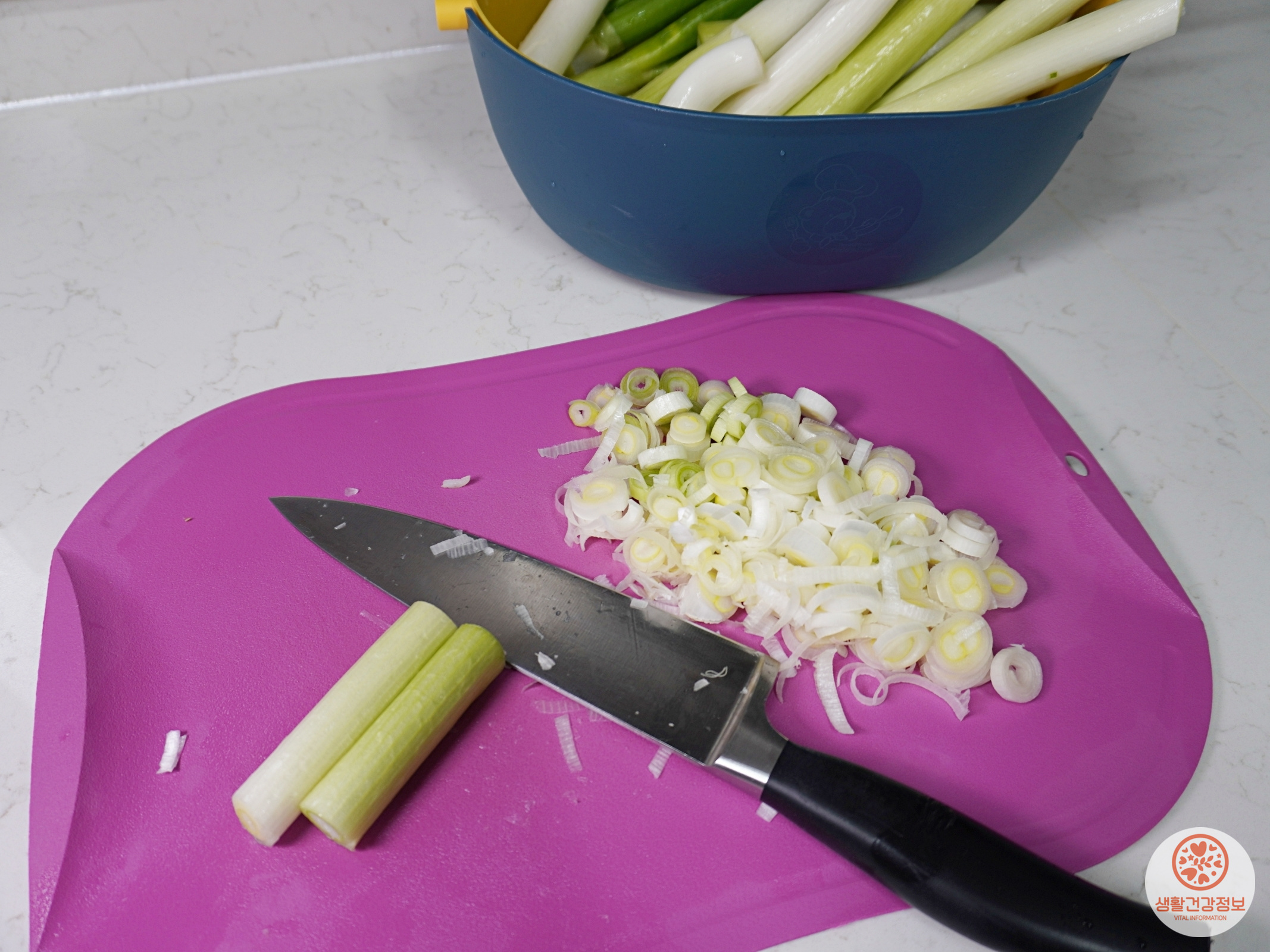 대파를 깨끗하게 세척해서 용도에 맞게 썰어주시고요.