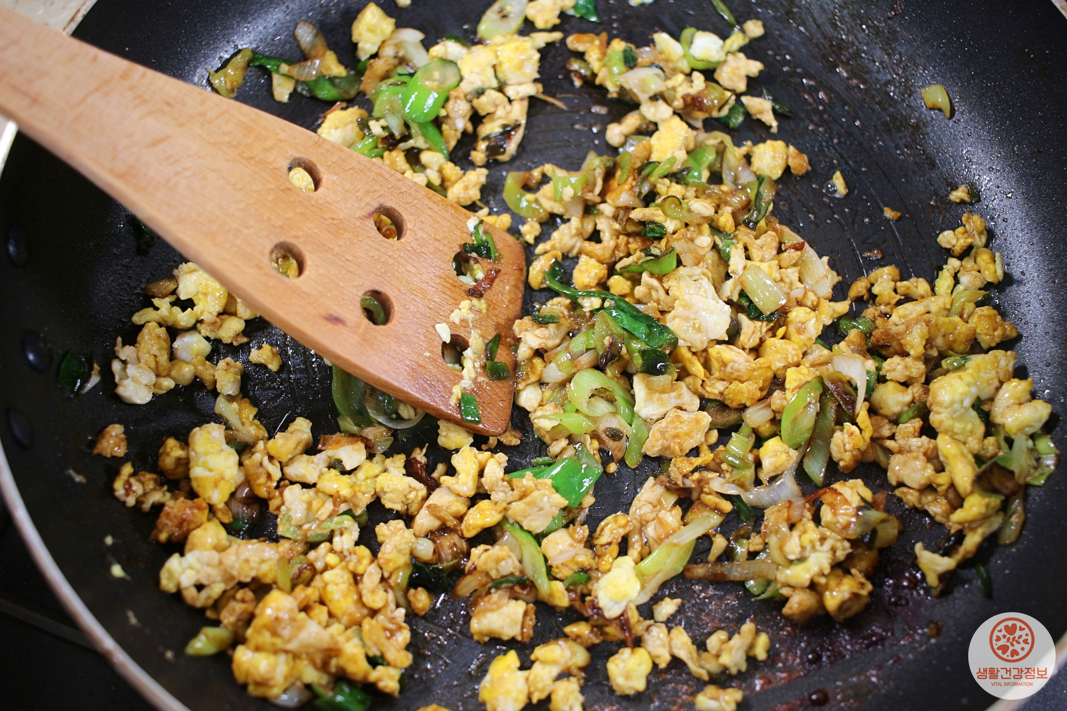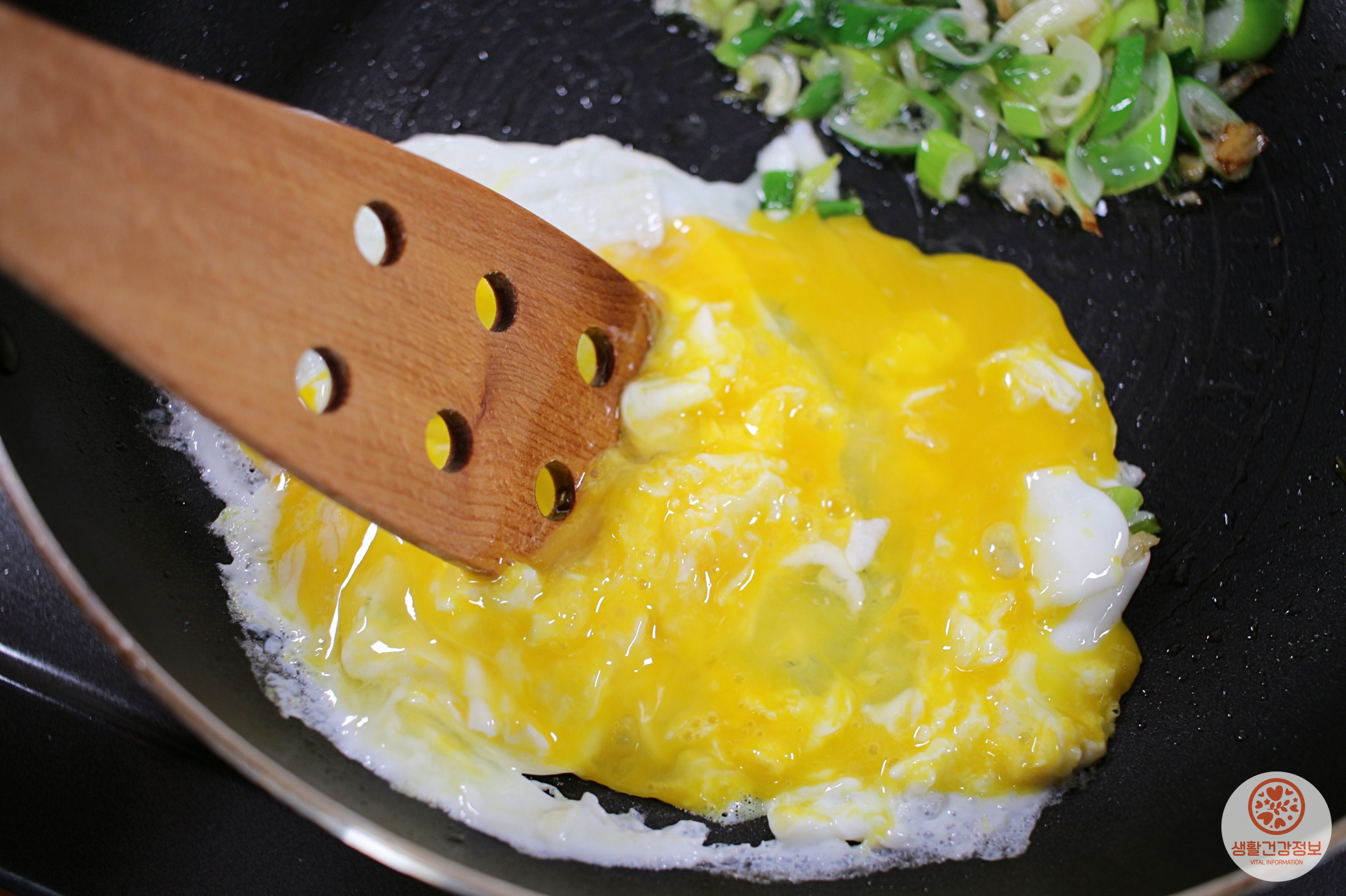 끓인 간장과 대파, 스크램블드에그를 섞은 다음
