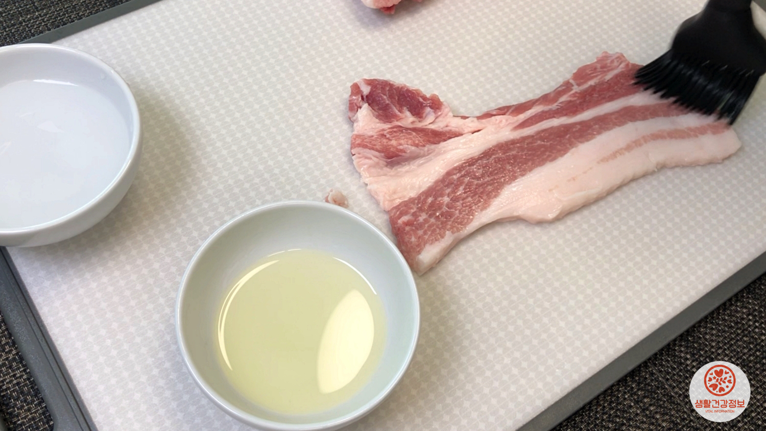 돼지고기의 앞뒤로 얇게 식용유를 바르면