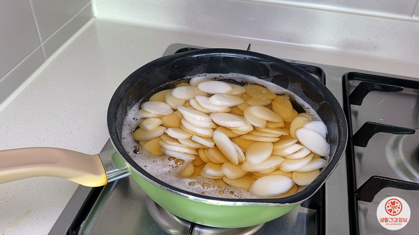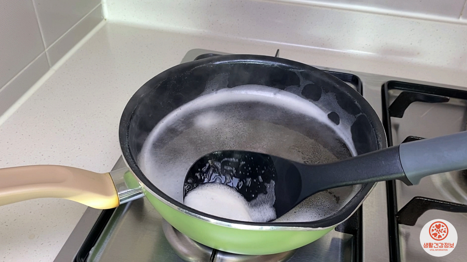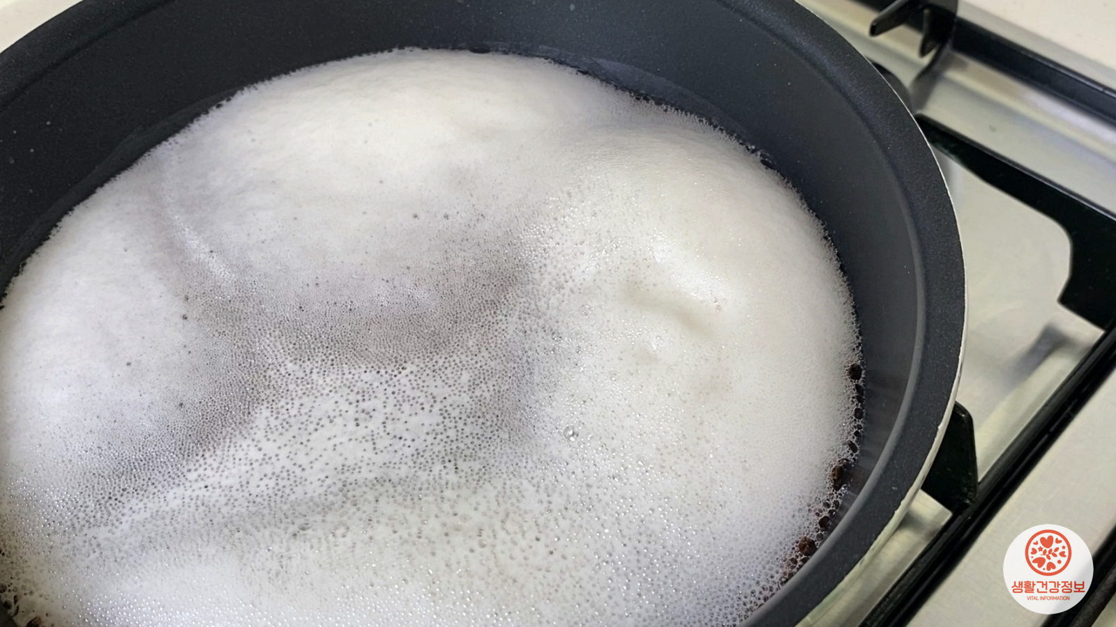 거품이 넘치기 전에 가스불을 끄고