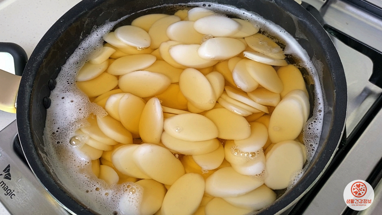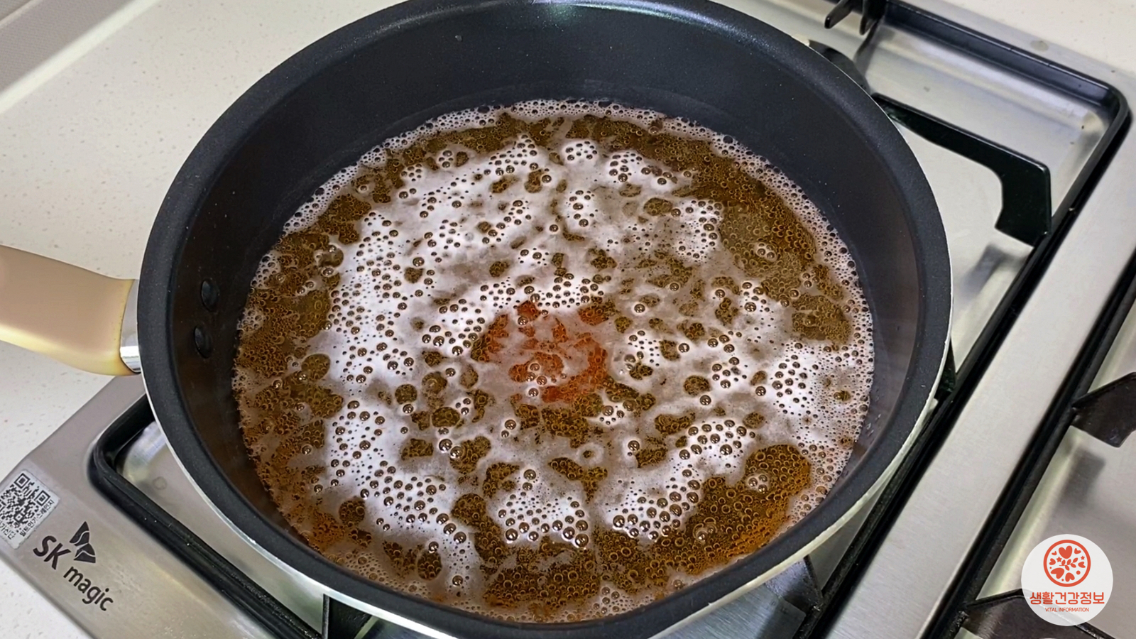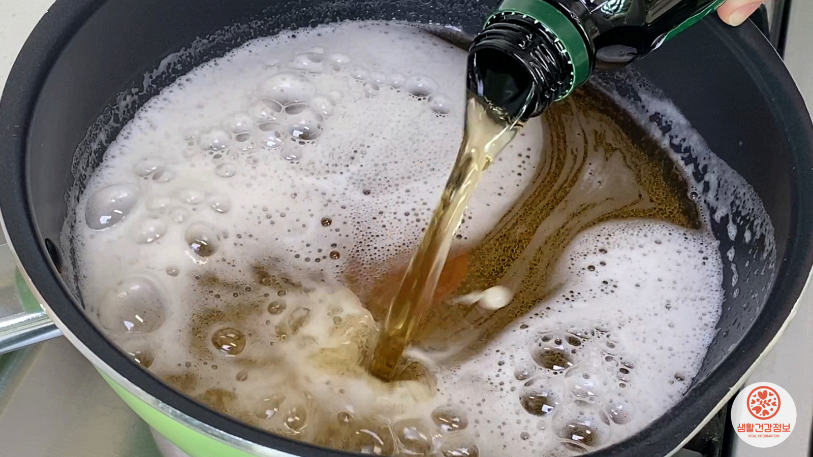 거품이 넘치기 전에 가스불을 끄고