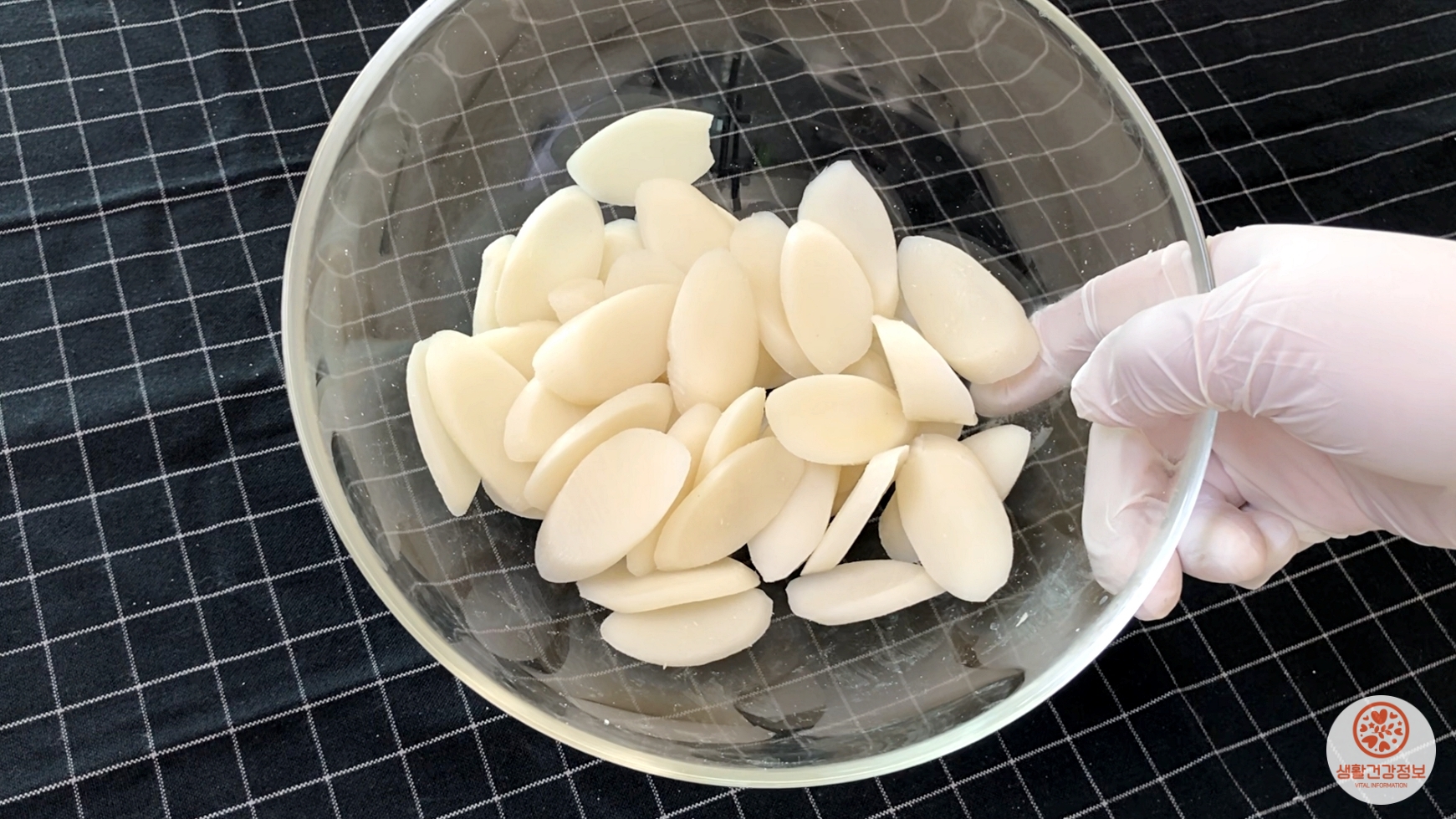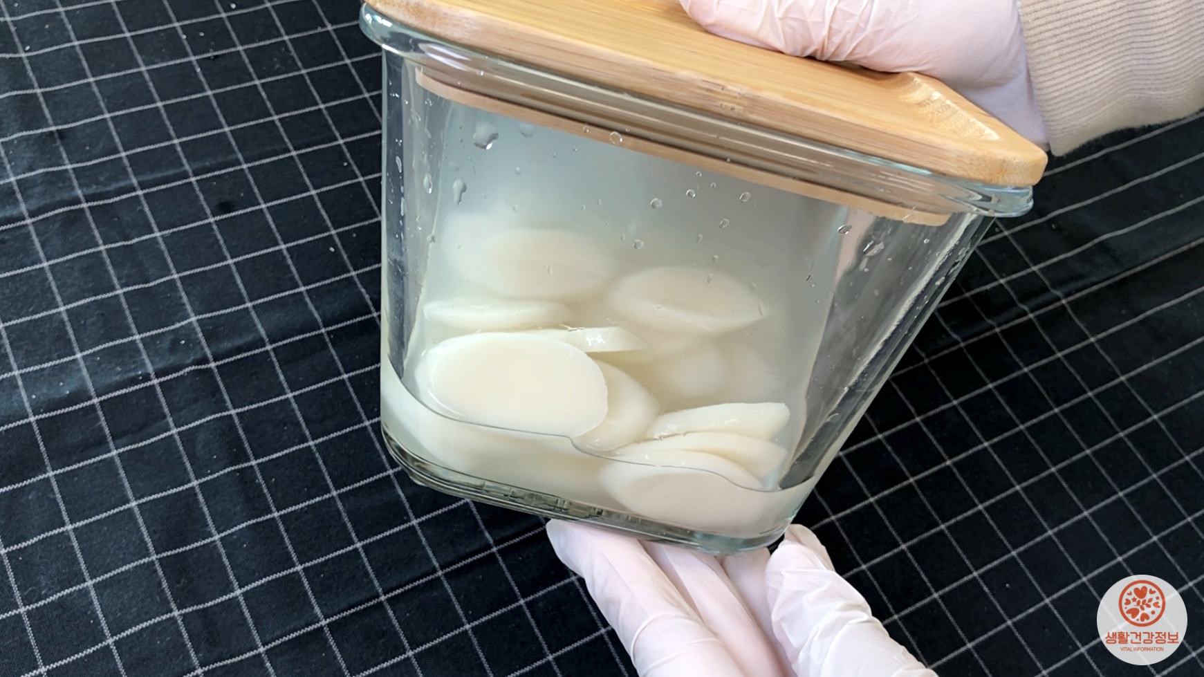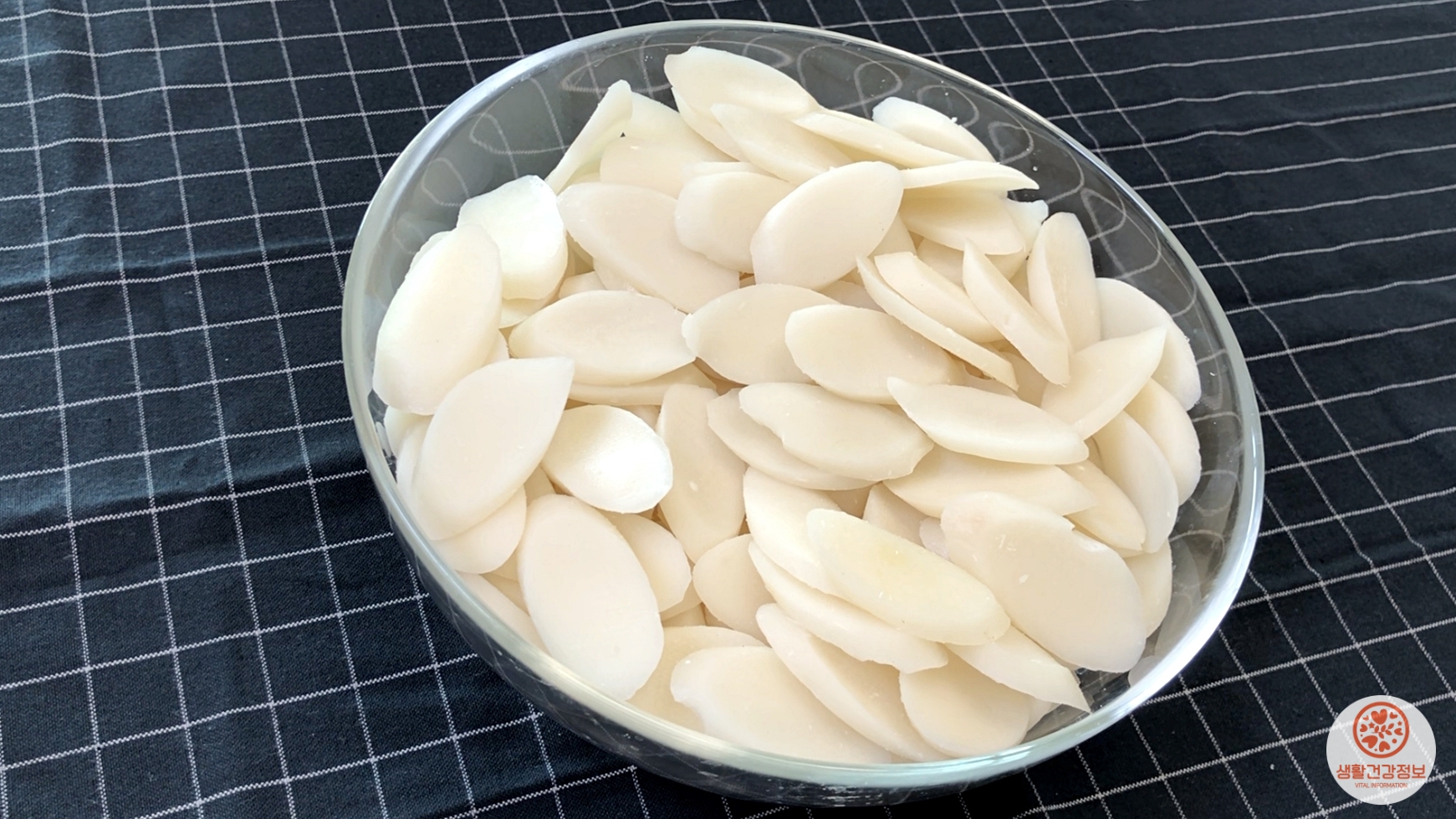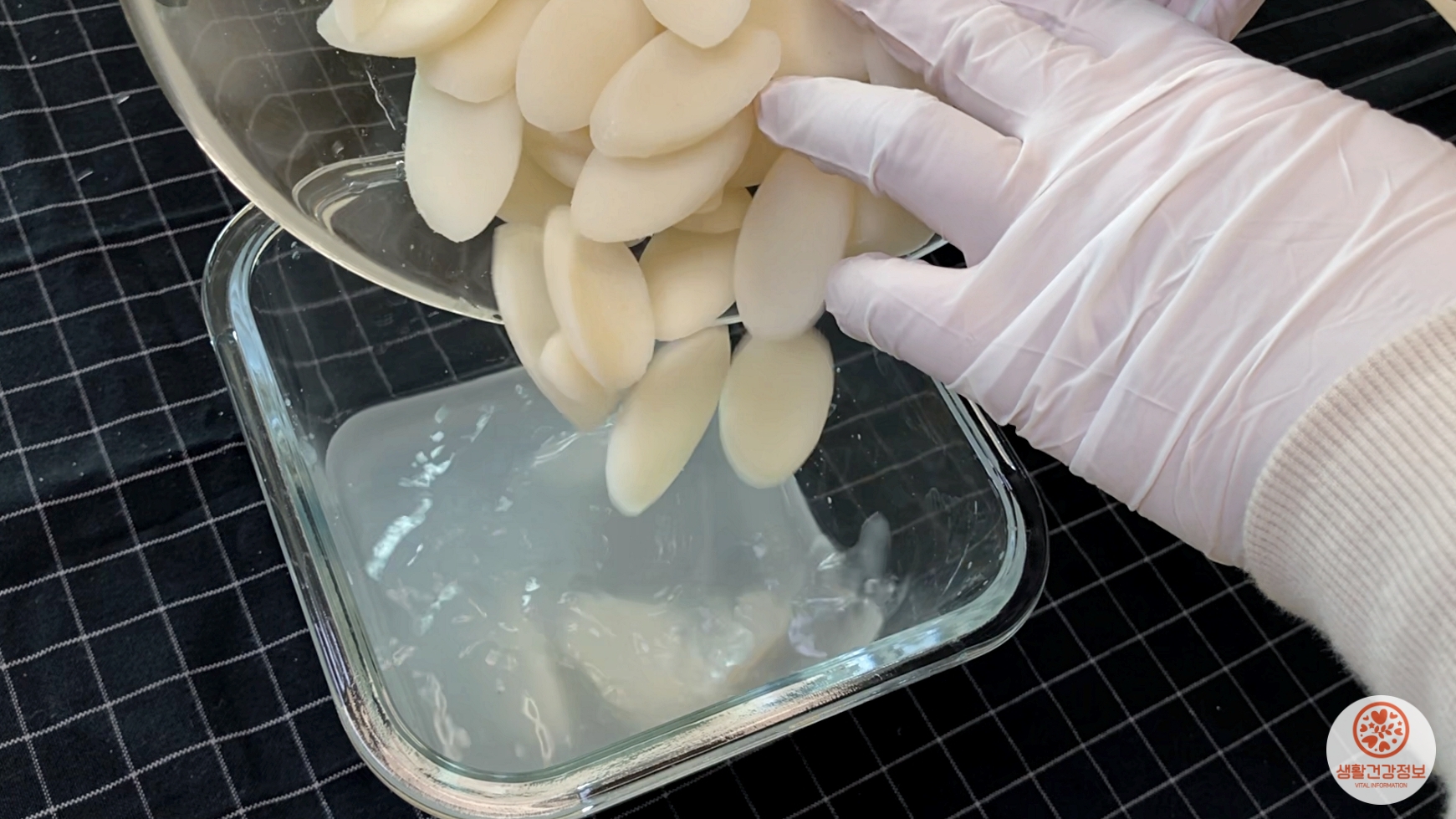 방법은 쌀뜨물에 떡국떡을 담그기만 하면 돼요.