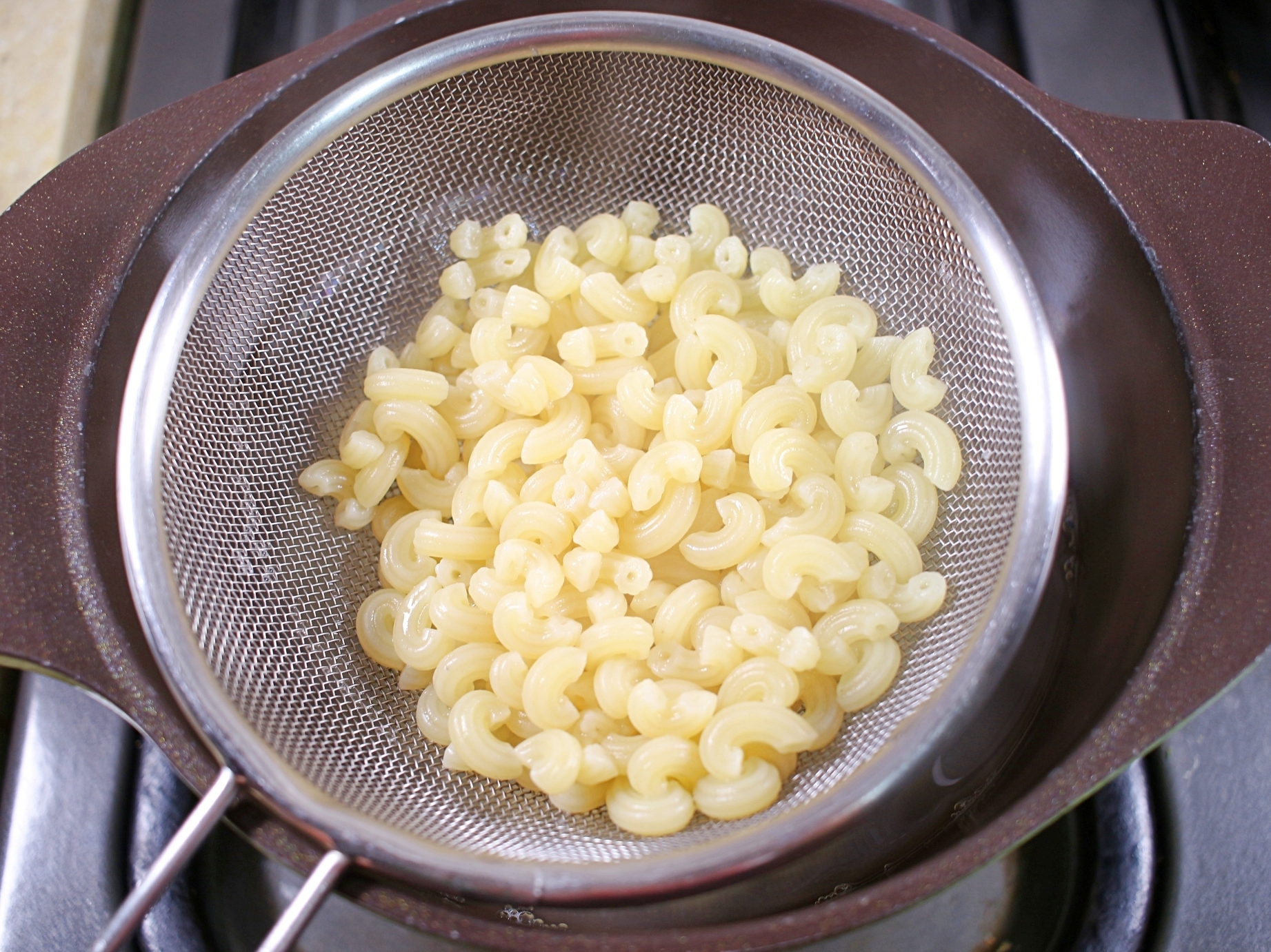 냄비에 물을 끓여 마카로니를 넣고 약 10분간 삶아주세요.