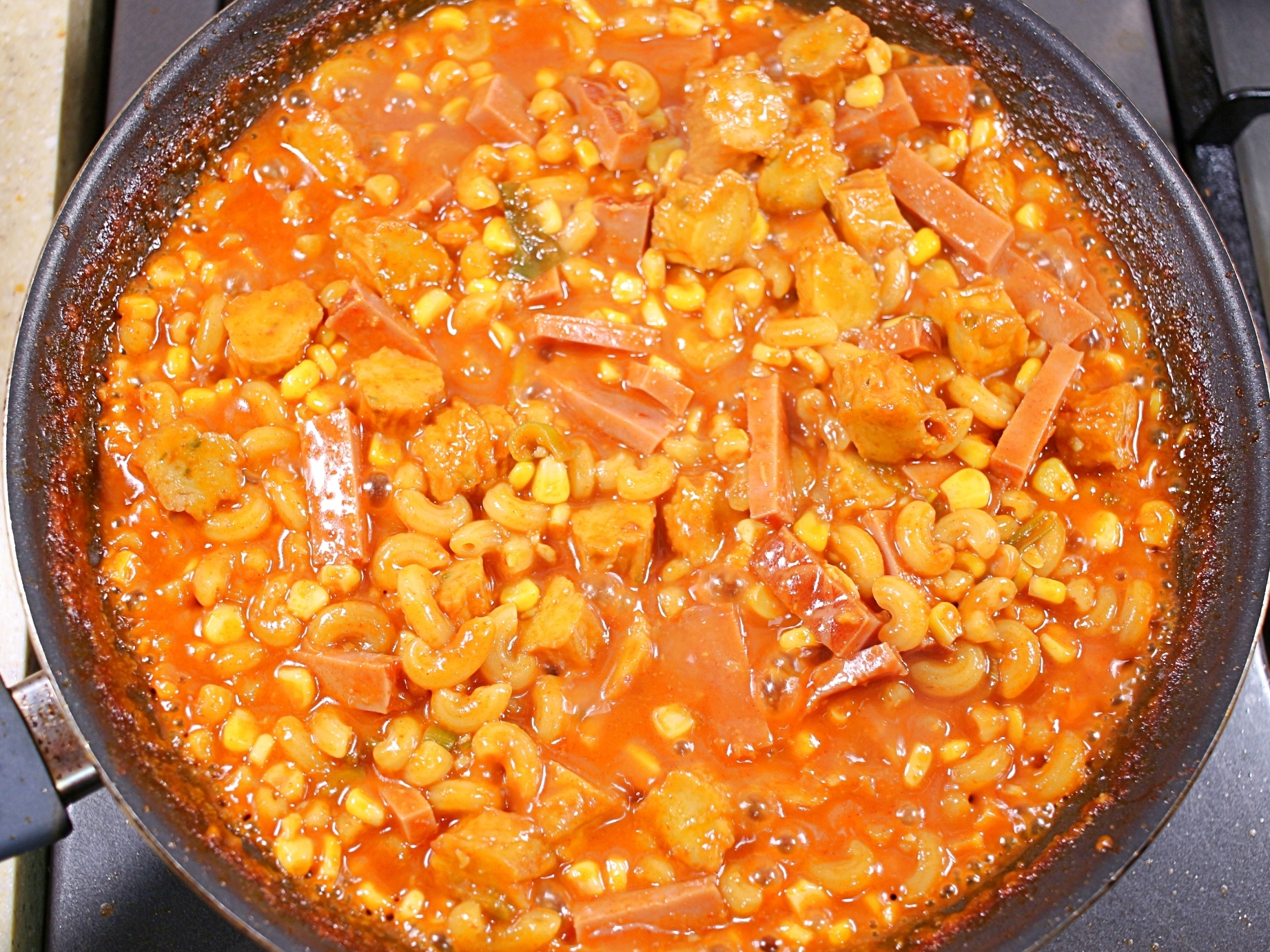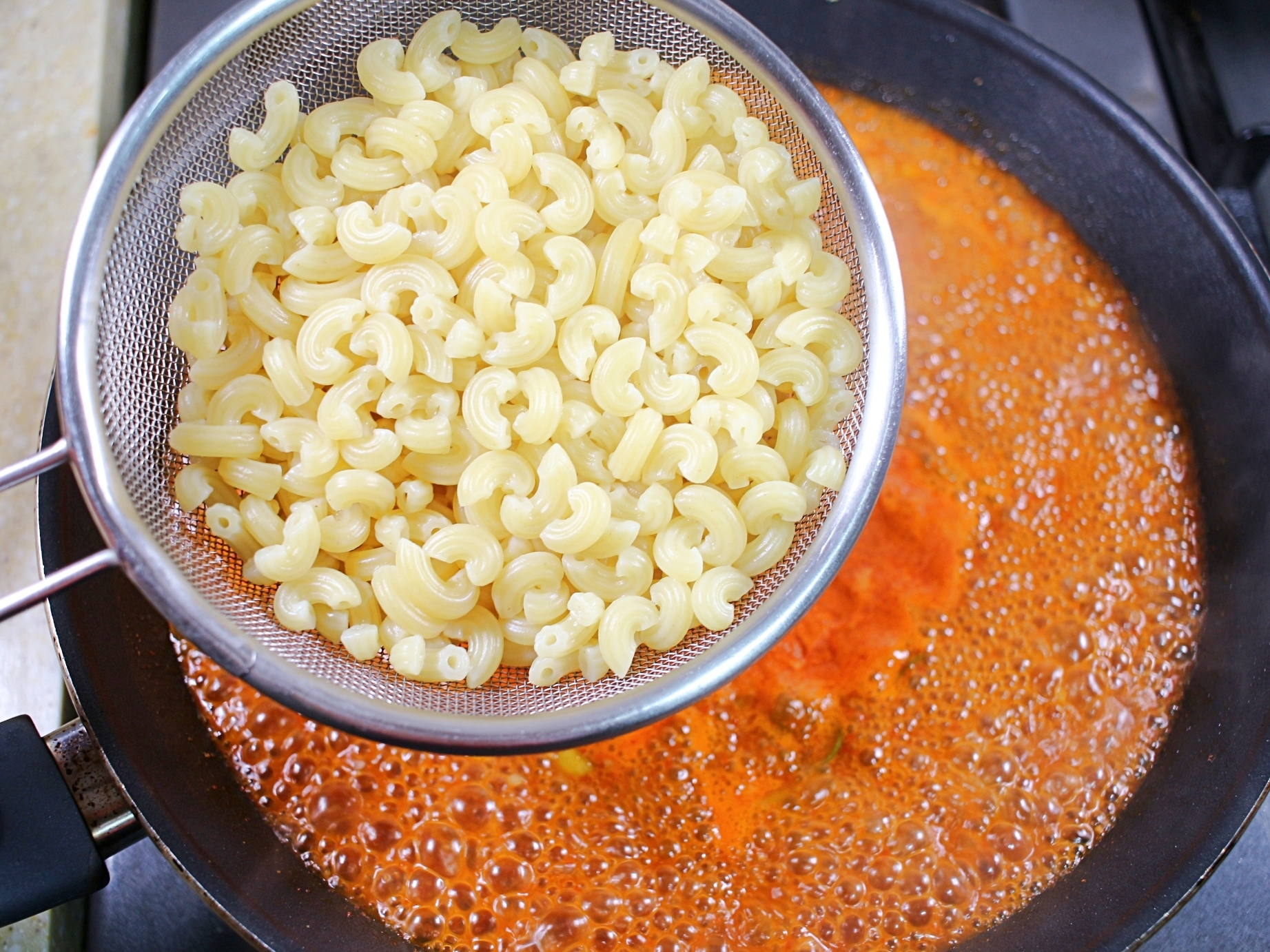 양념이 보글보글 끓기 시작하면 삶아놓은 마카로니와 함께