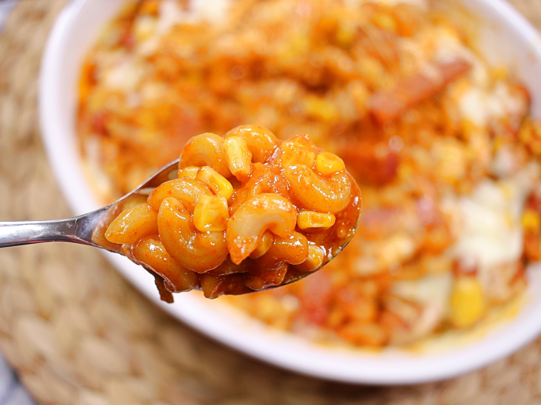 한숟가락 크게 떠서 먹으면 양념이 진하게 밴 마카로니와