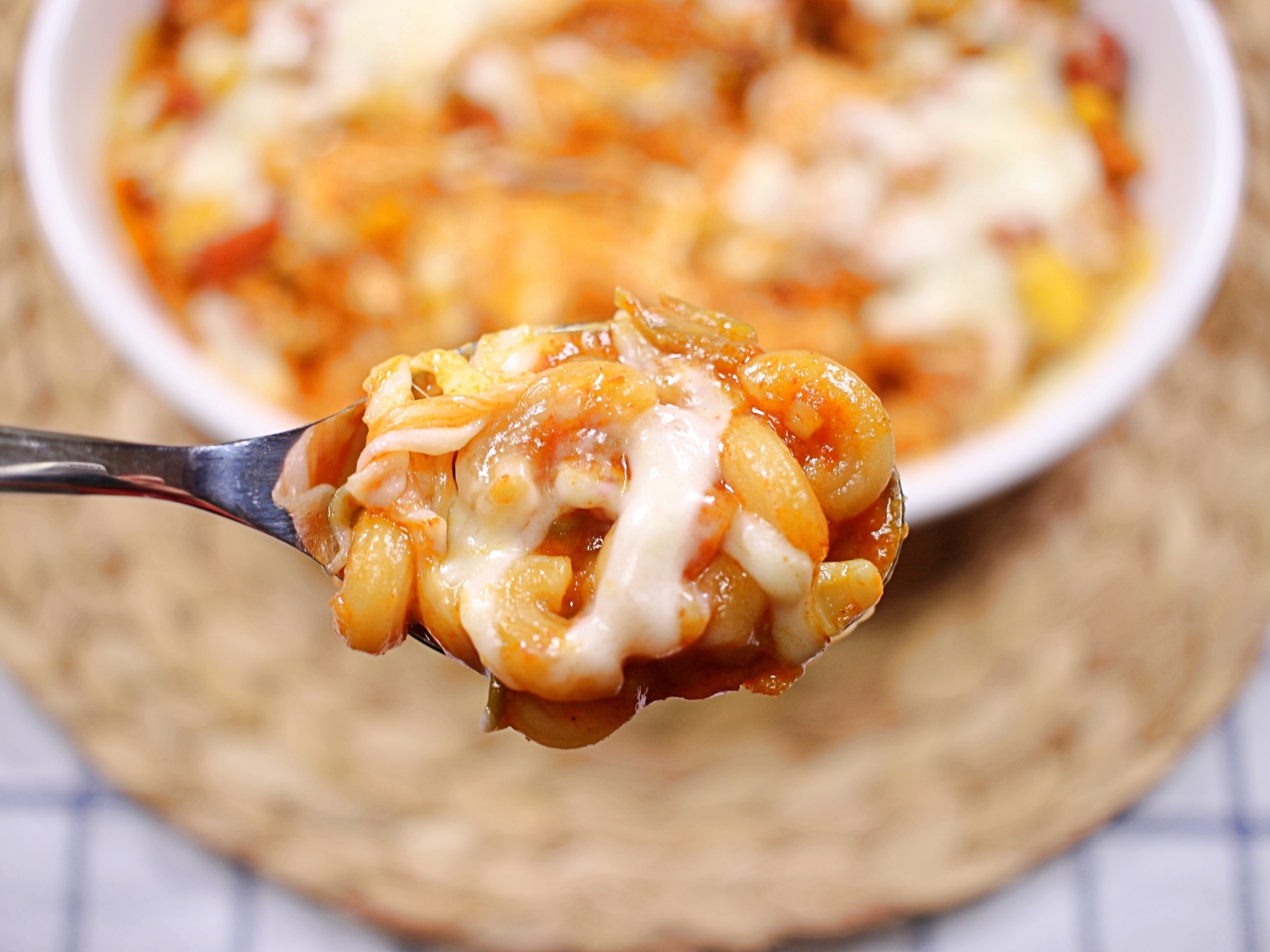 한숟가락 크게 떠서 먹으면 양념이 진하게 밴 마카로니와