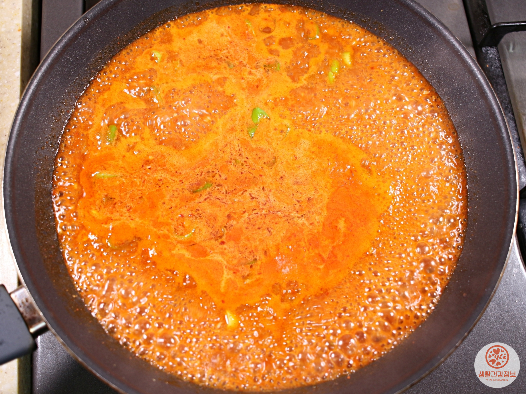 양념이 자작해질 때까지 중불에서 끓여주세요.