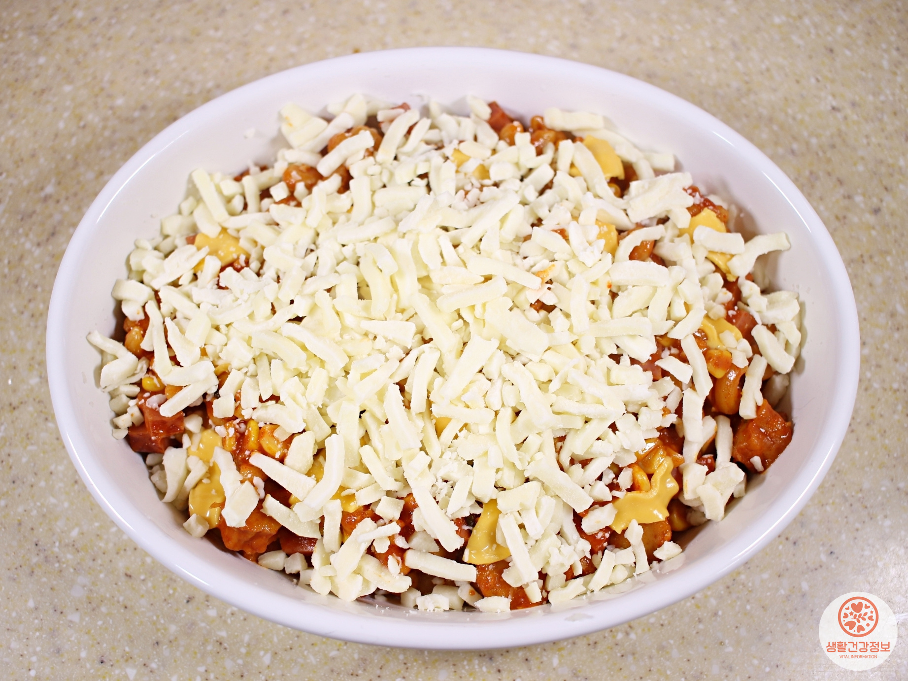 모짜렐라치즈 듬뿍 뿌려서 전자레인지로 돌려주세요.