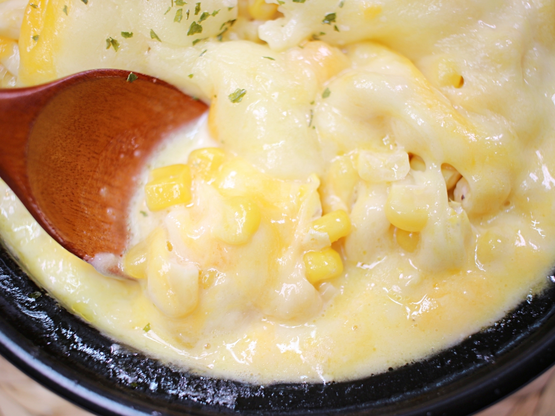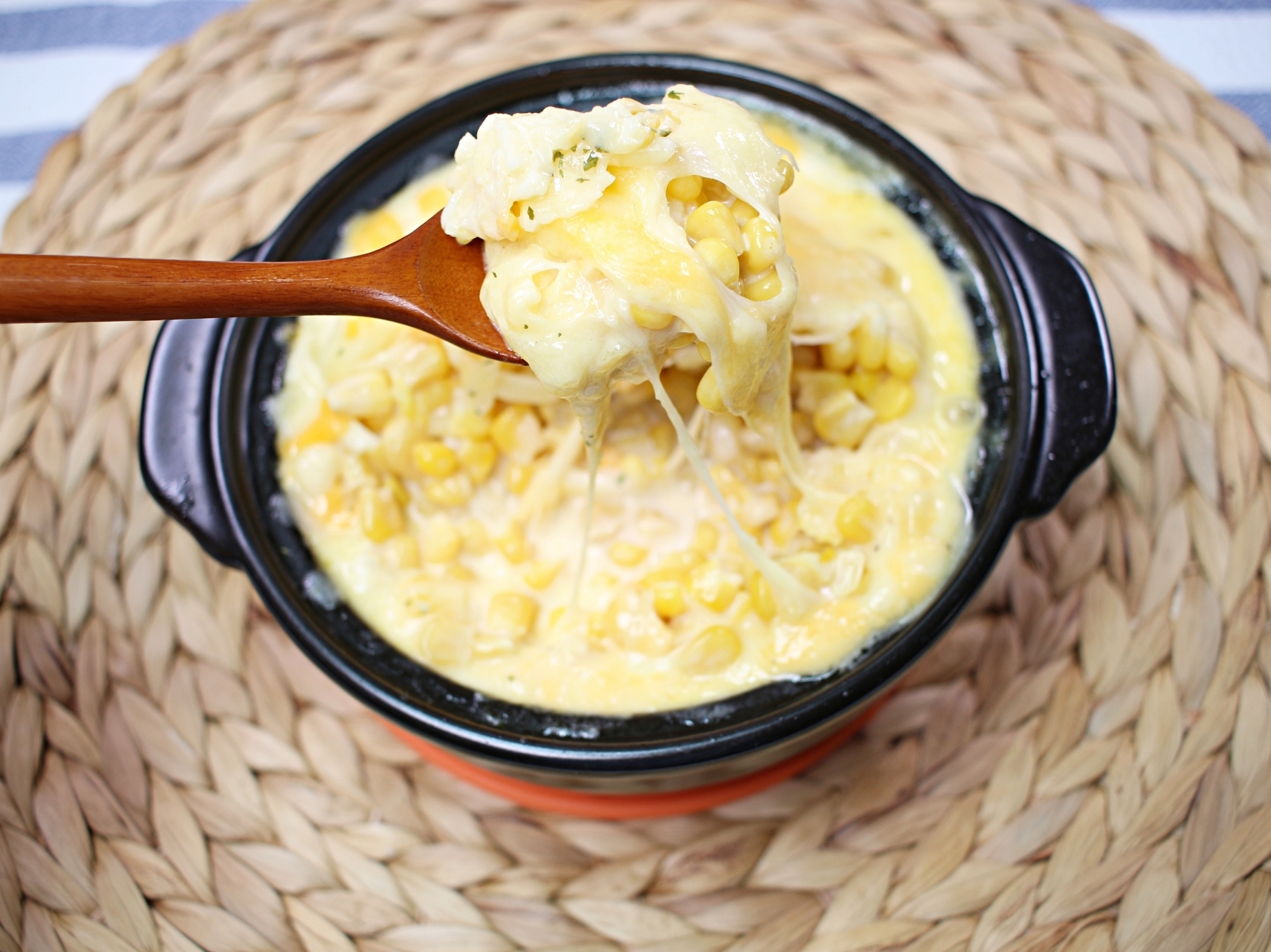 치즈 아래에 숨은 톡톡 터지는 옥수수,