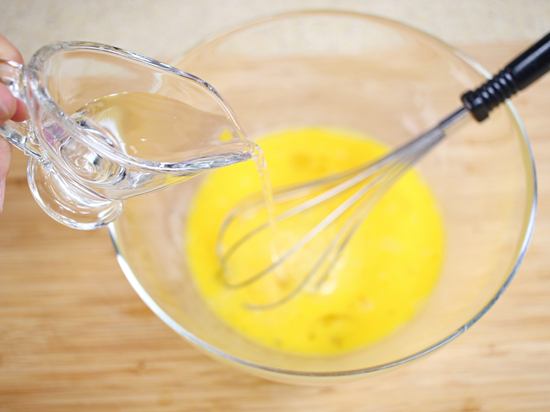 부드럽게 풀어놓은 계란에 물3큰술 넣고