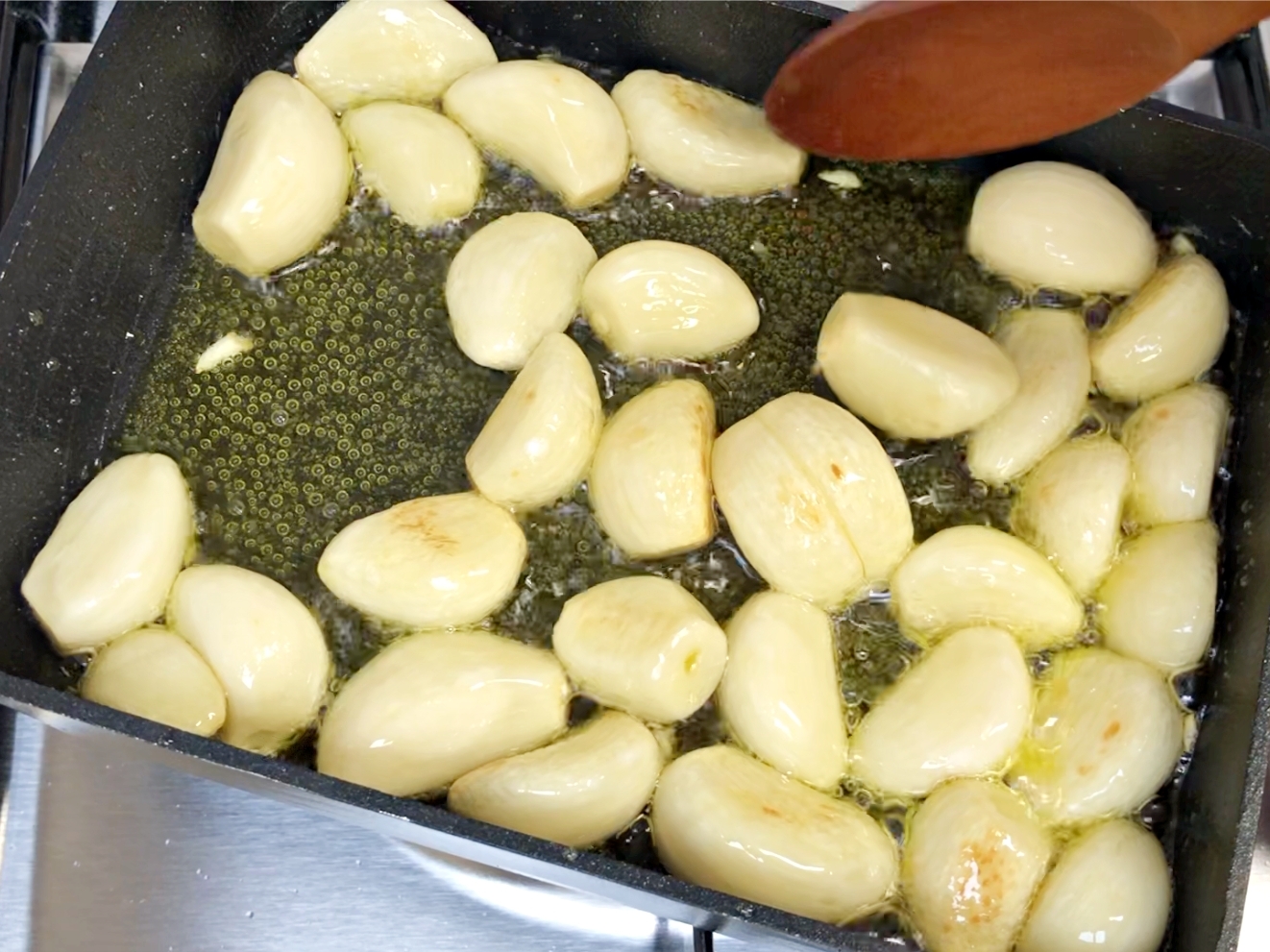 마늘향이 은은하게 퍼지면서 노릇노릇한 갈색으로 변했어요.