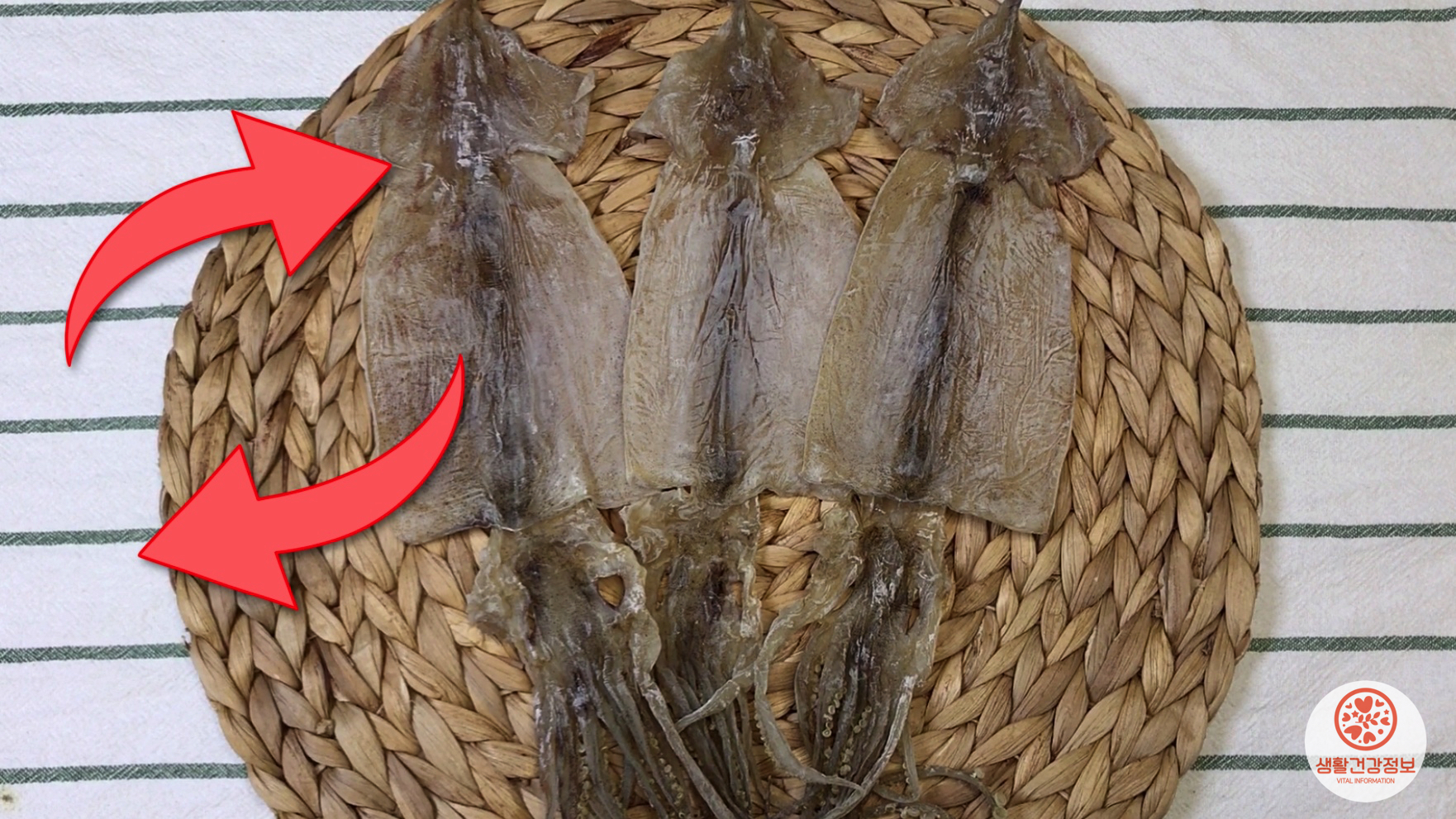 오른쪽은 마른 상태에서 불에 구운 오징어에요.