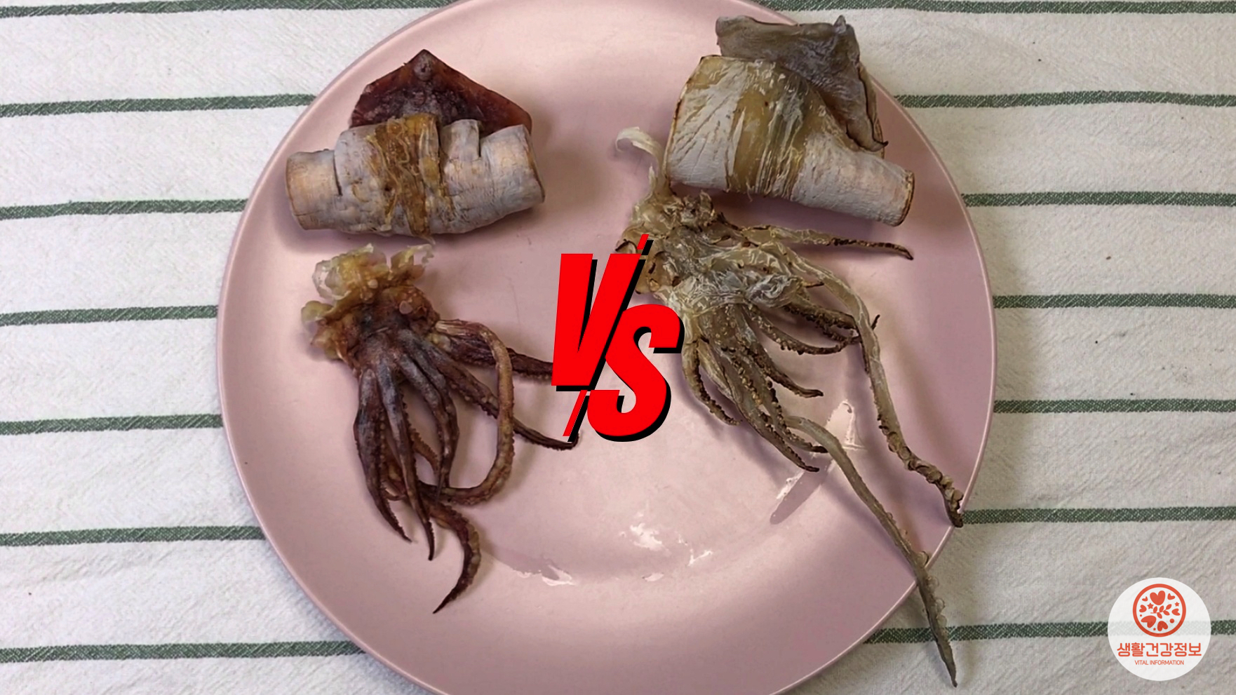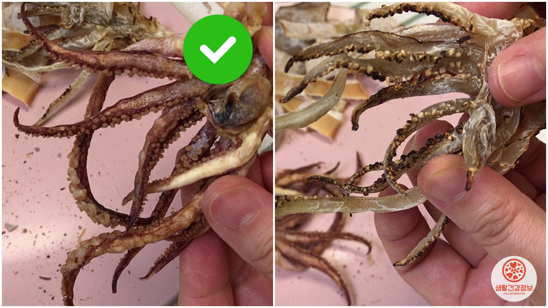 오른쪽은 마른 상태에서 불에 구운 오징어에요.