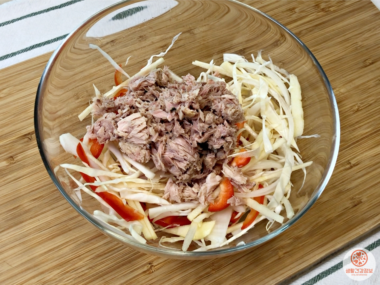마요네즈 넣어서 버무리면 초간단 샐러드 완성.
