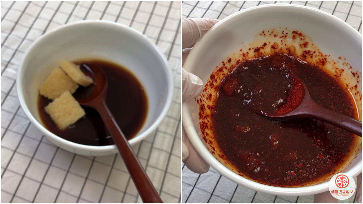 올리고당, 멸치액젓, 들기름, 다진마늘, 고춧가루