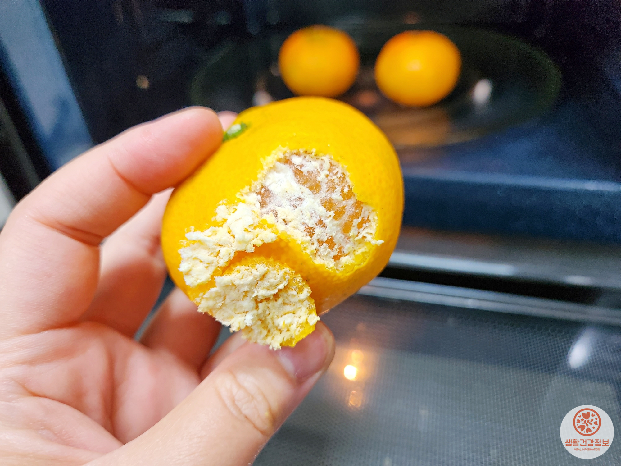 귤을 전자레인지로 데워서 먹는거예요.