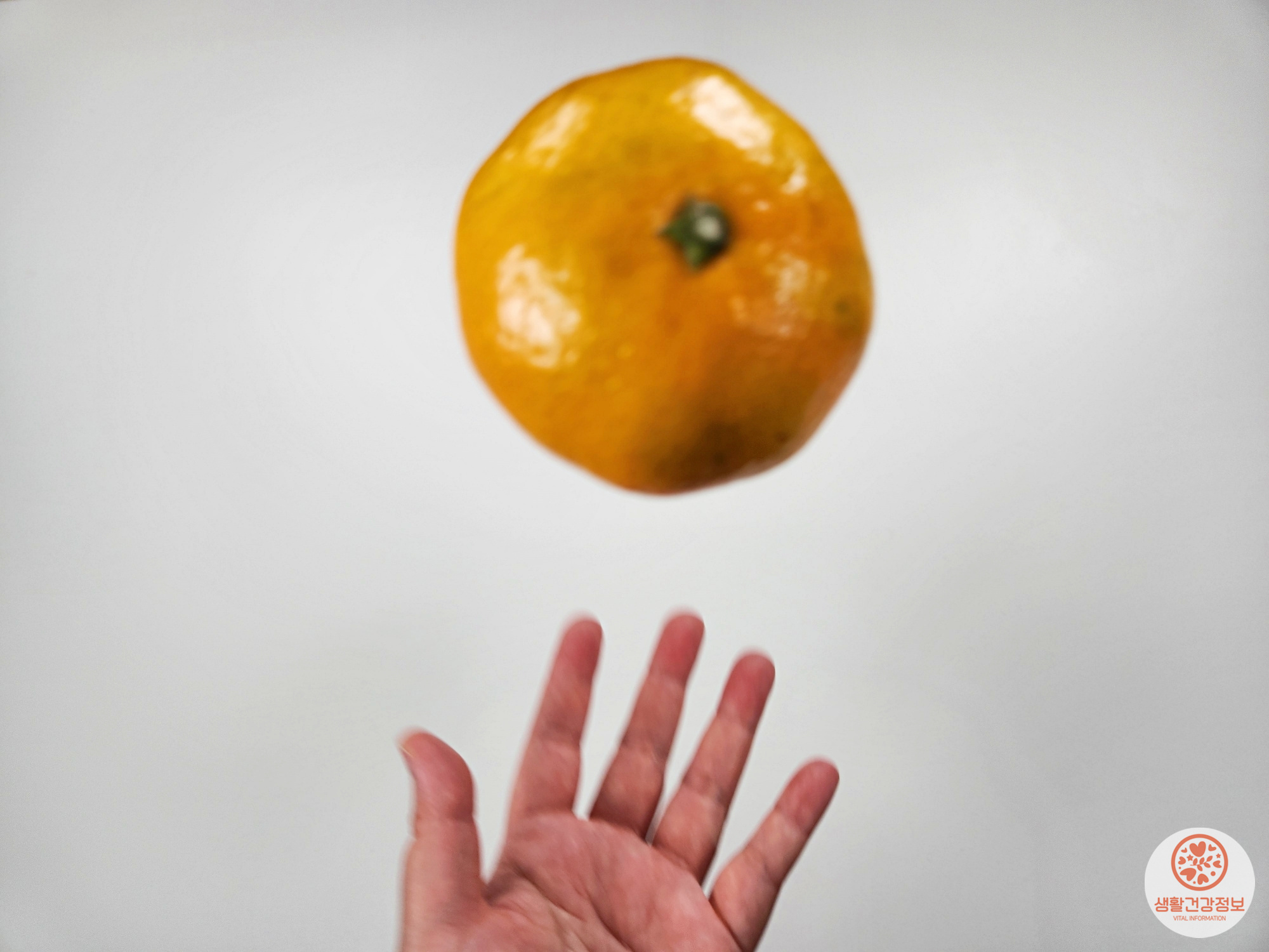 귤을 허공에 4~5번만 던졌다 받았다를 반복하는 거예요.