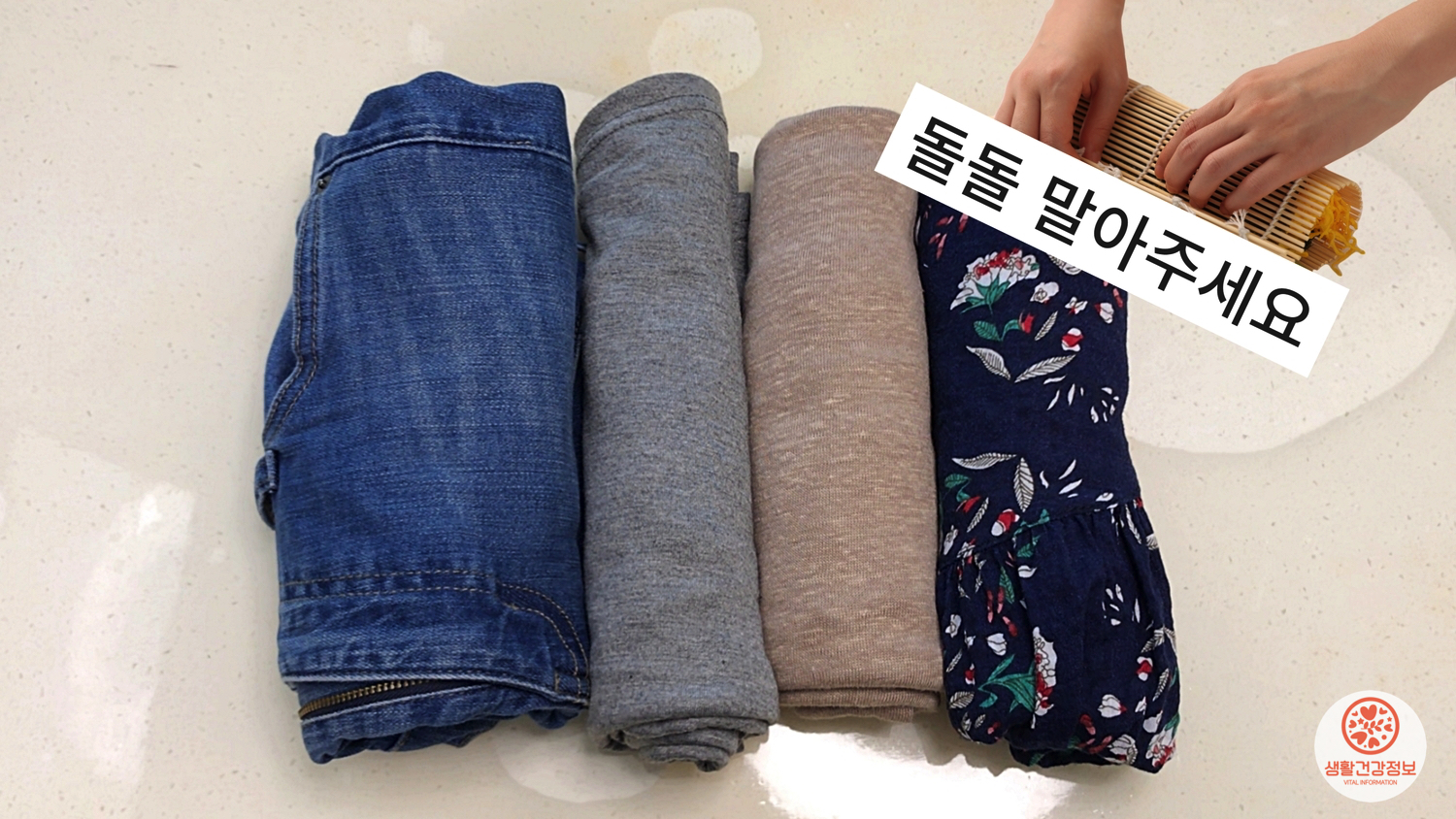 옷을 접지 말고 돌돌 말아주세요.