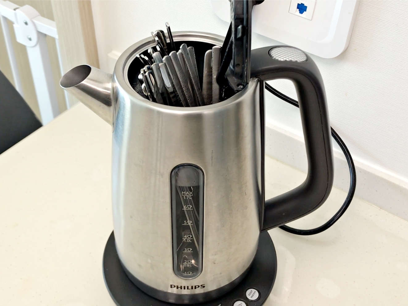 숟가락, 젓가락과 함께 전기포트도 소독할 수 있어서 좋아요.