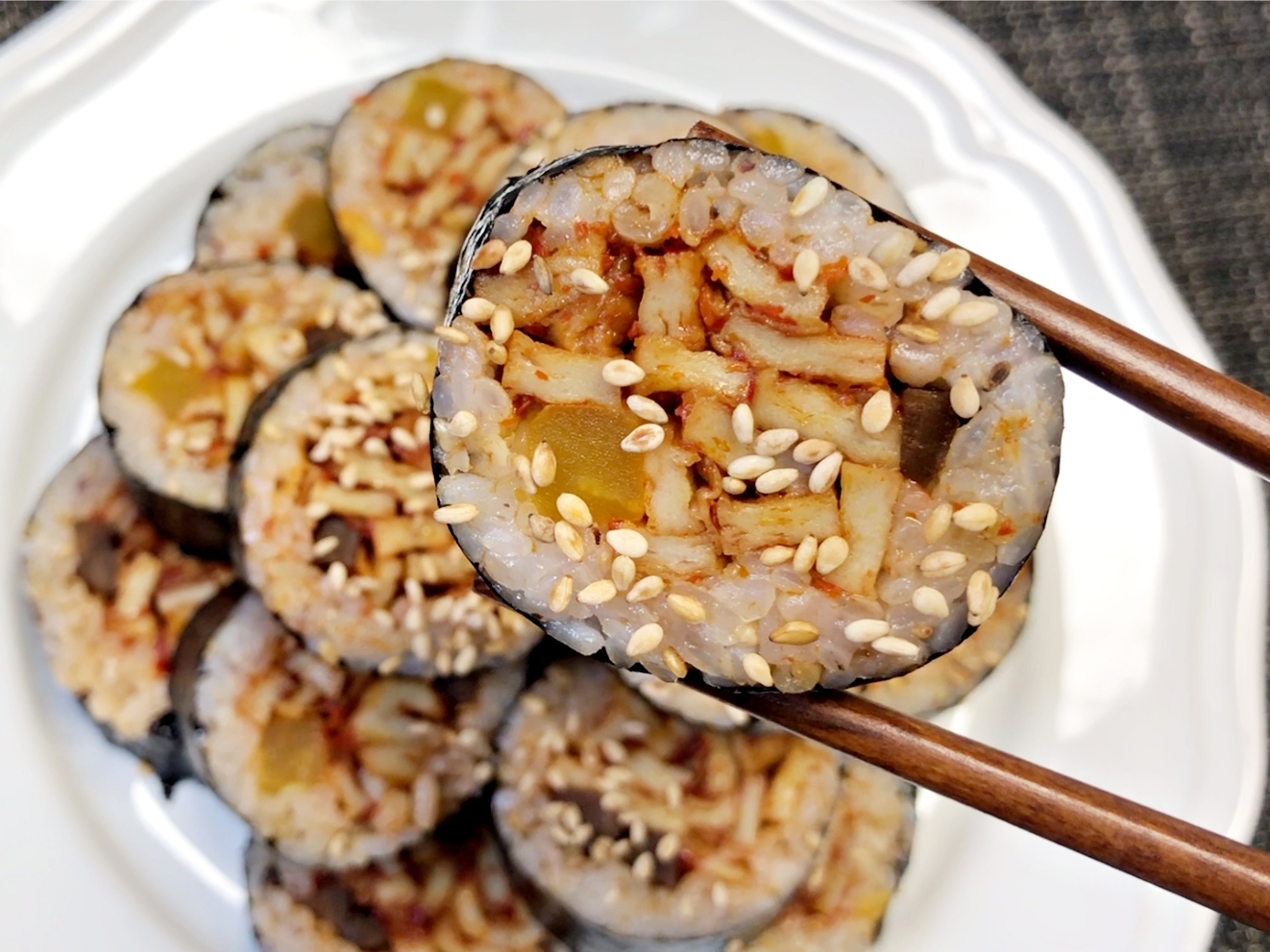 아삭하게 씹히는 단무지와 우엉이 간을 맞춰주고