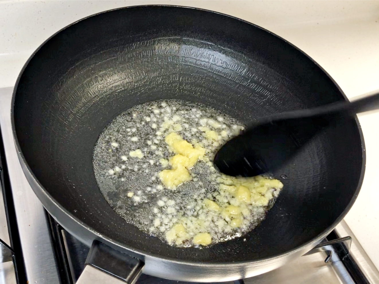 다진마늘 2숟가락 넣어서 마늘기름을 내주세요.