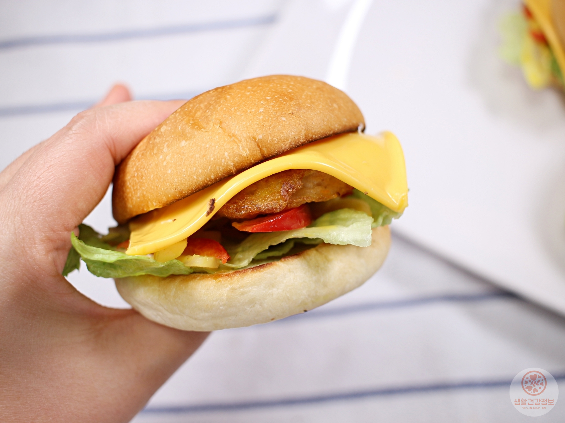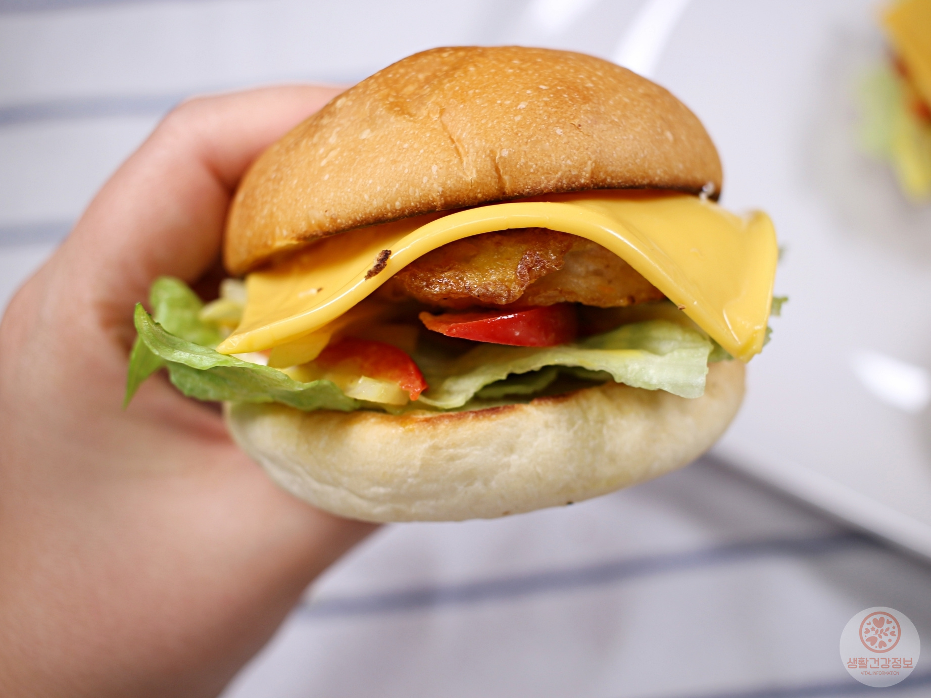 작지만 동그랑땡 패티부터 야채, 치즈까지