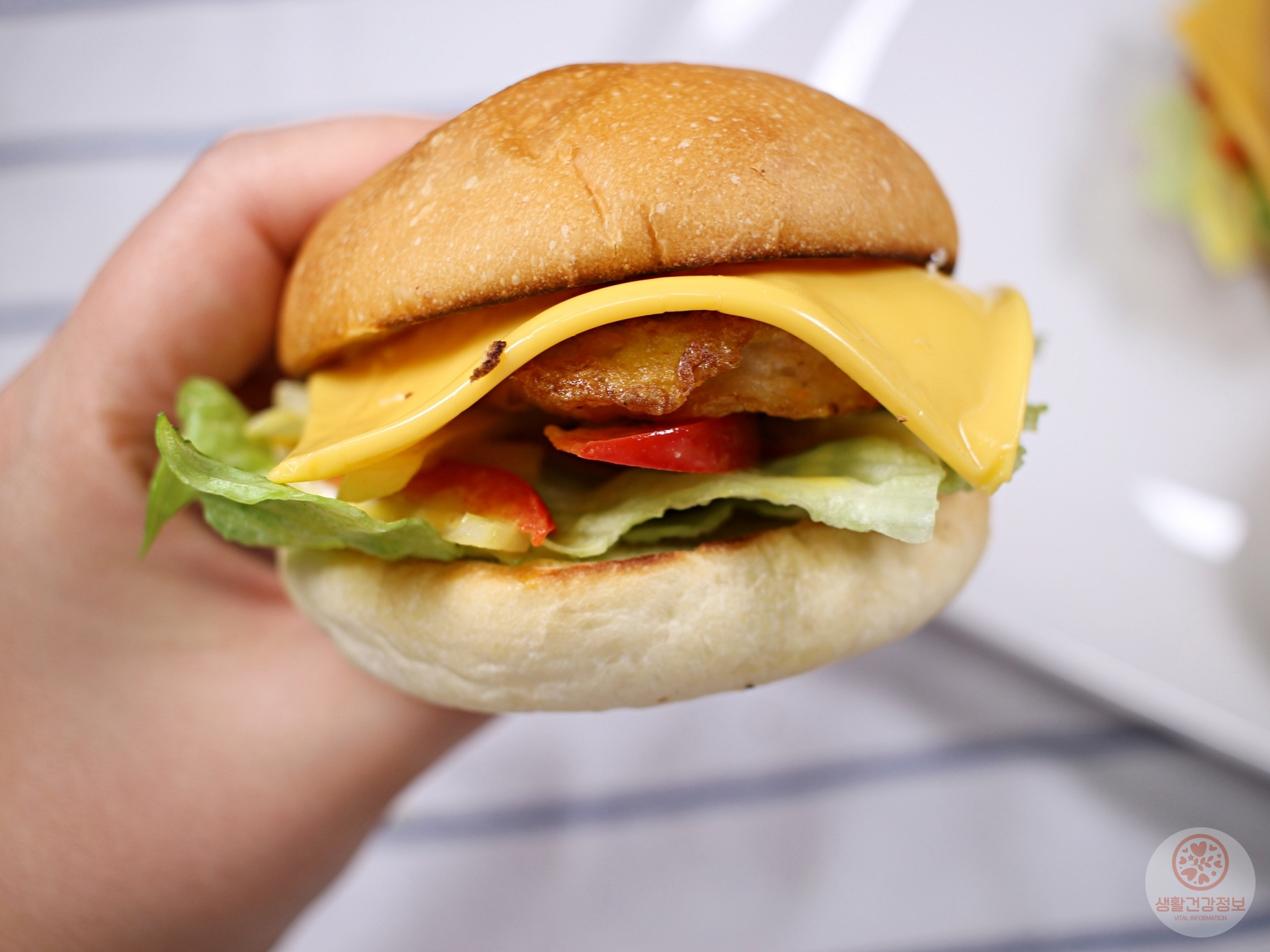 작지만 동그랑땡 패티부터 야채, 치즈까지