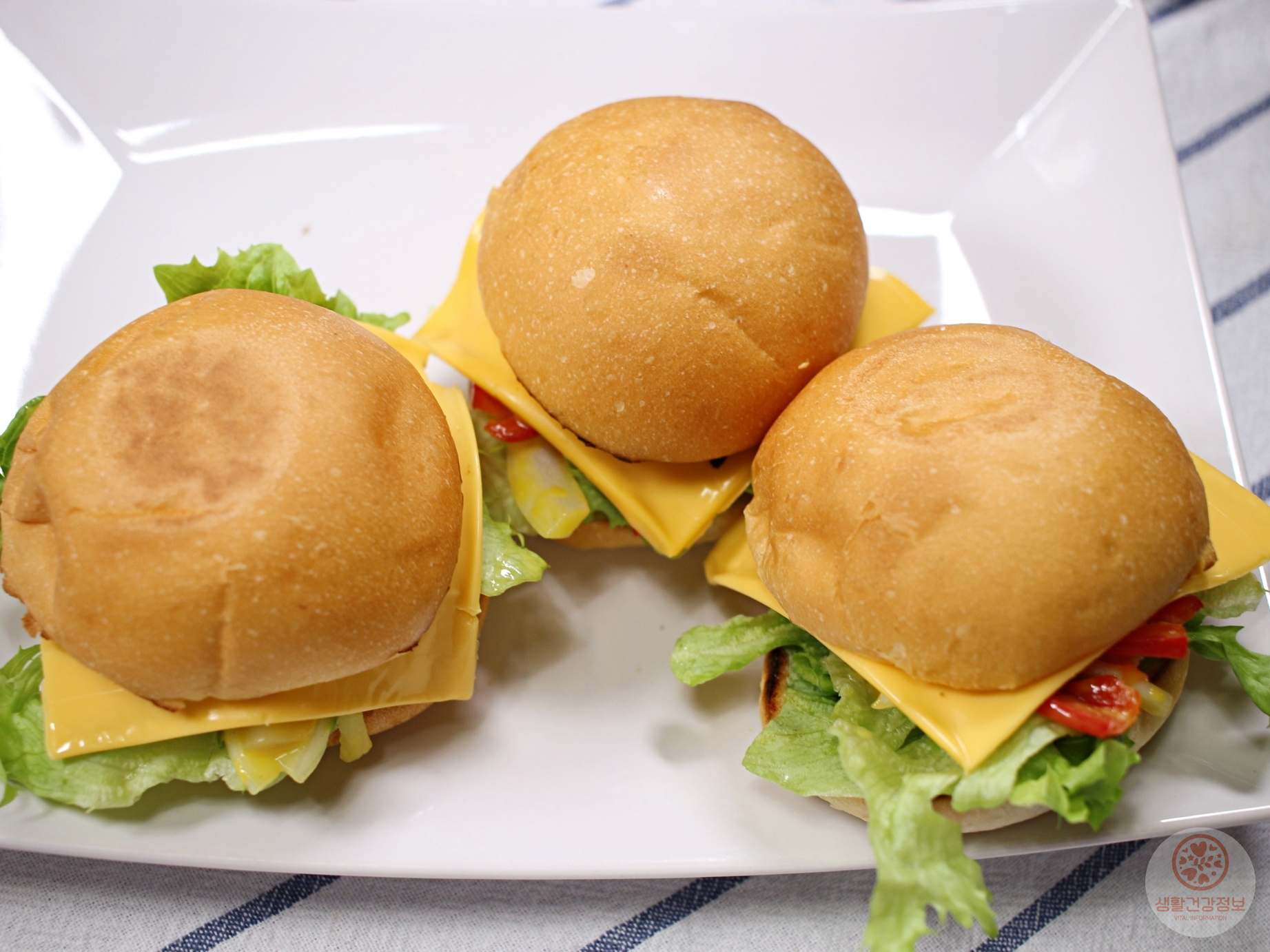모닝빵 사이즈에 맞춰서 양상추, 슬라이스치즈 올려주시고요.