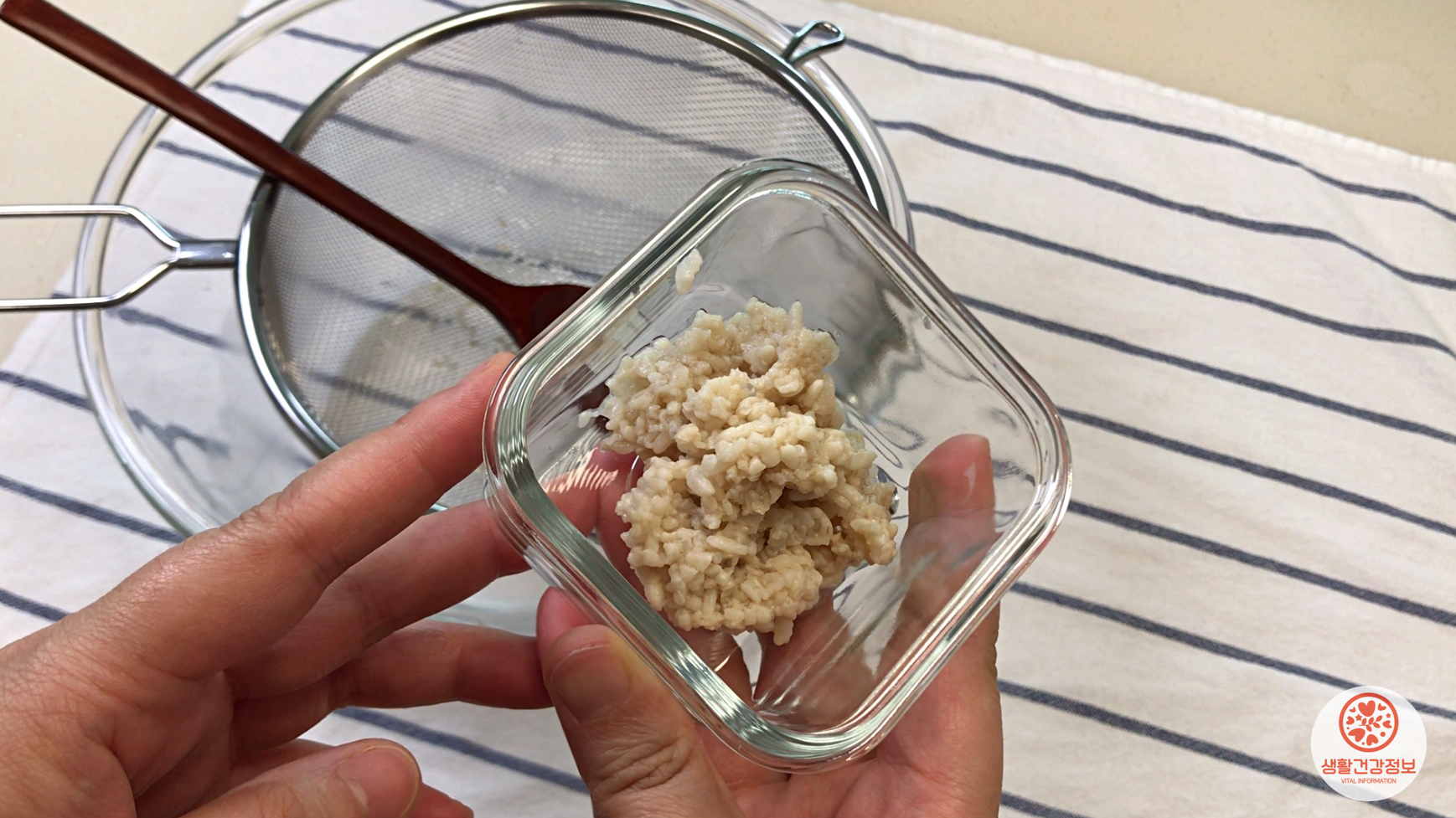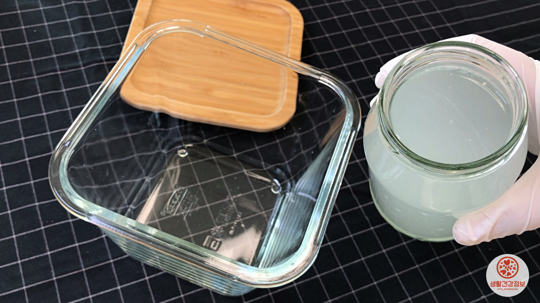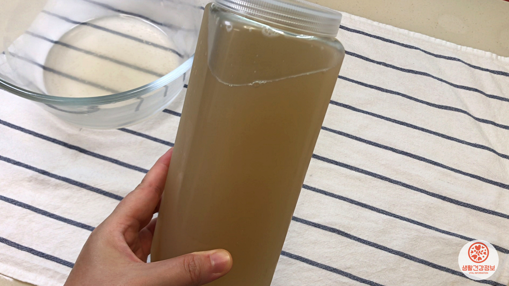 밀폐용기에 깨끗한 쌀뜨물을 붓고