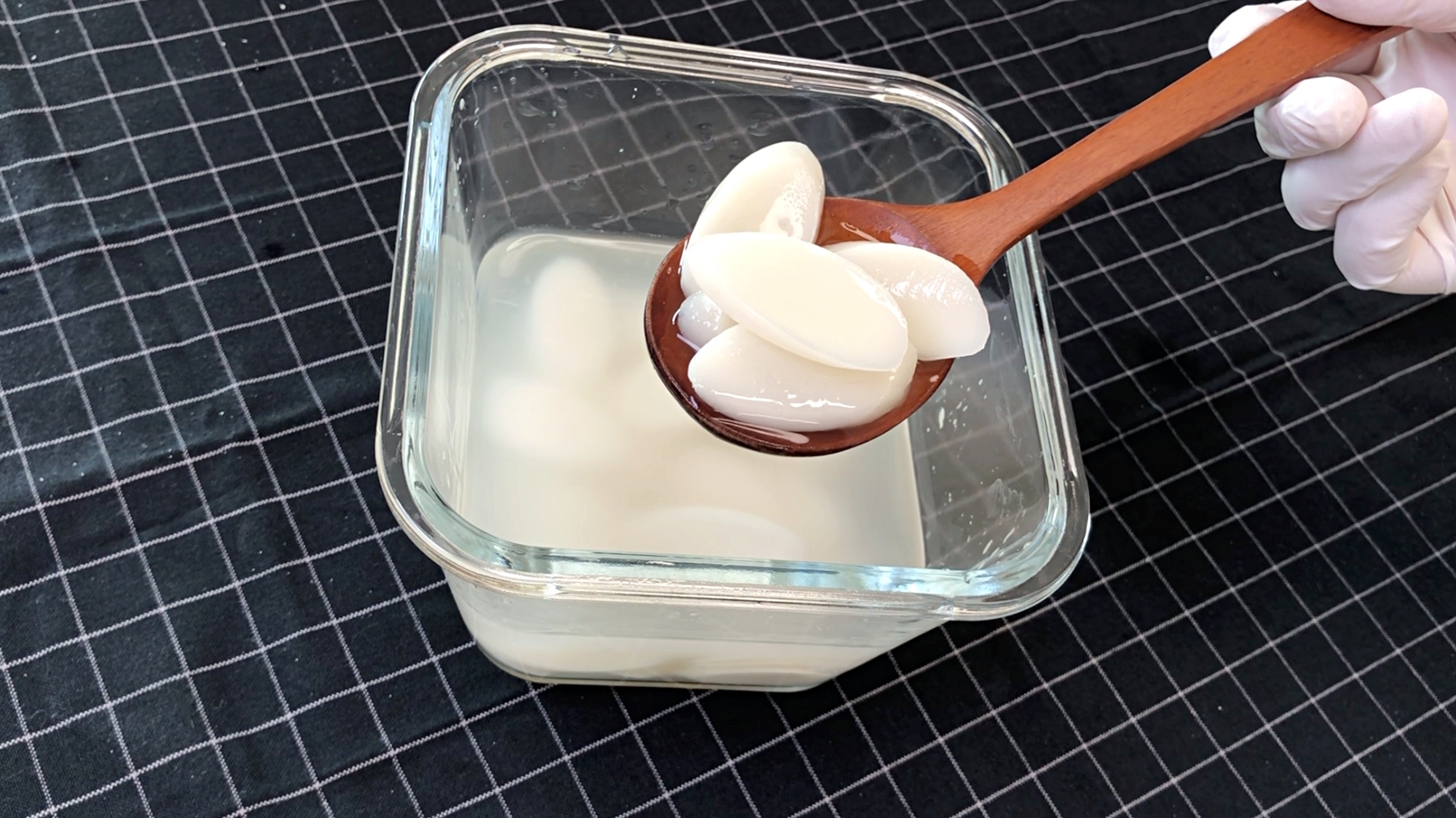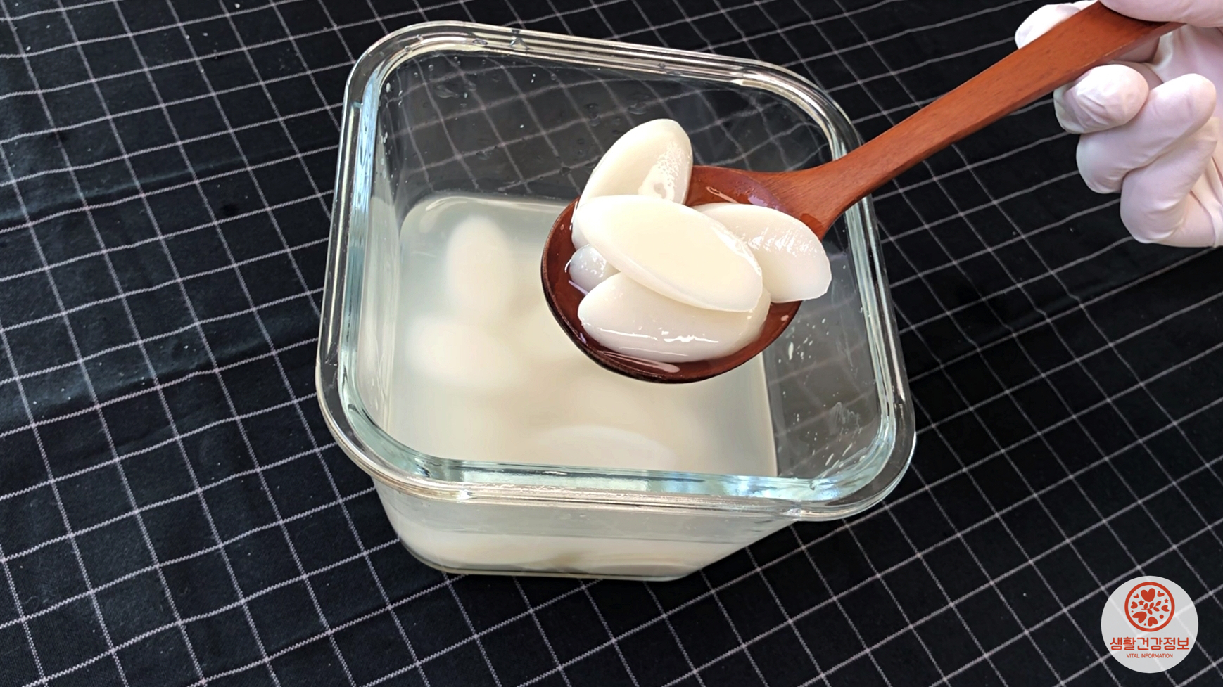 쌀뜨물에 떡국떡을 담기만 하면 되고요.