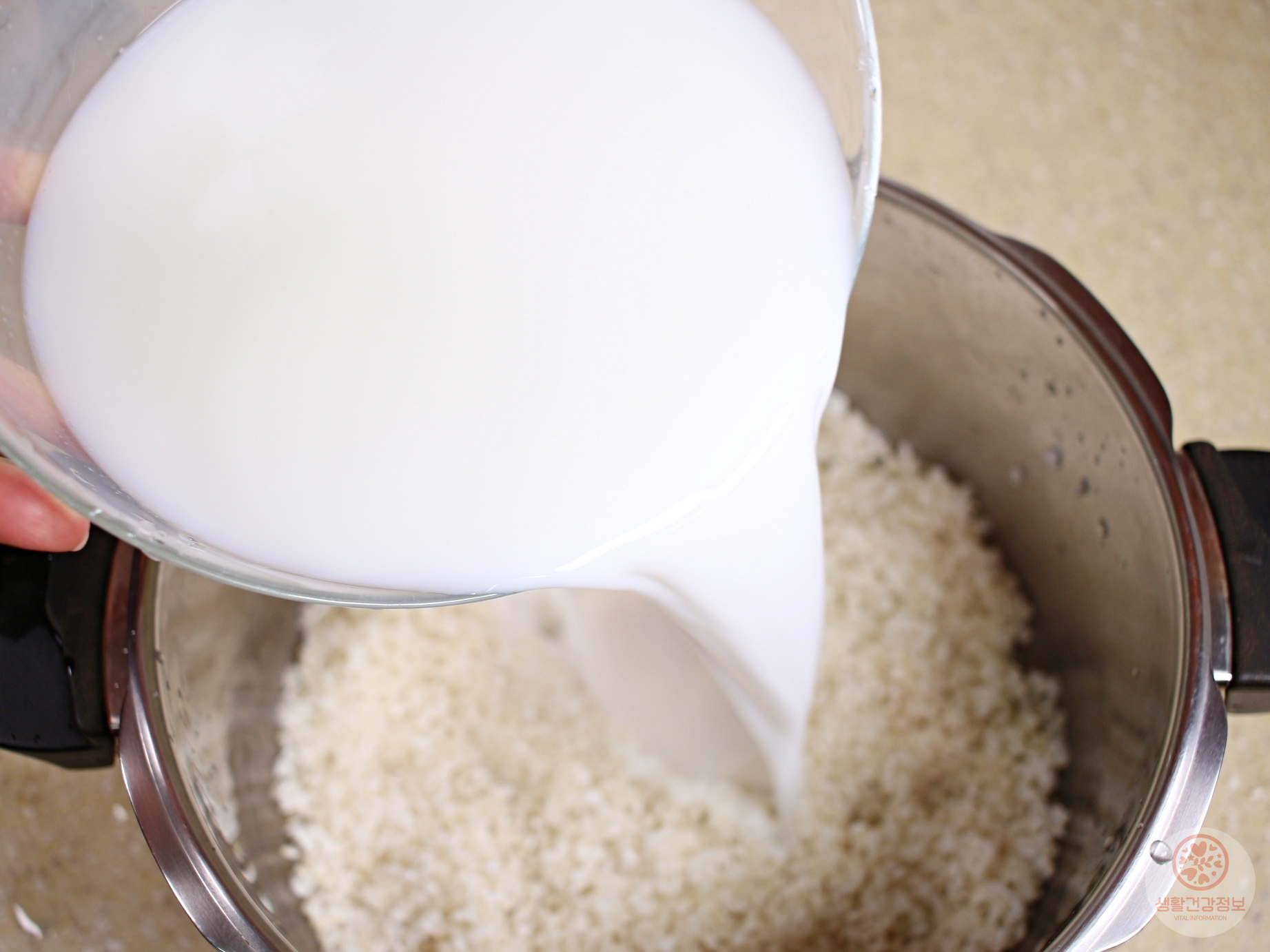 우유의 칼슘, 단백질, 비타민 등이 밥에 녹아들어서