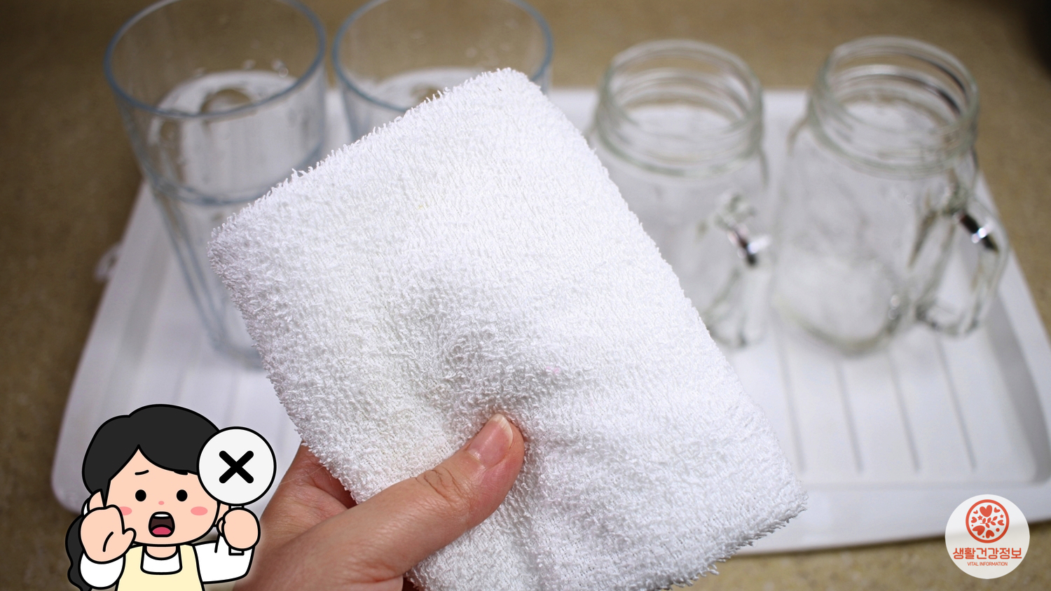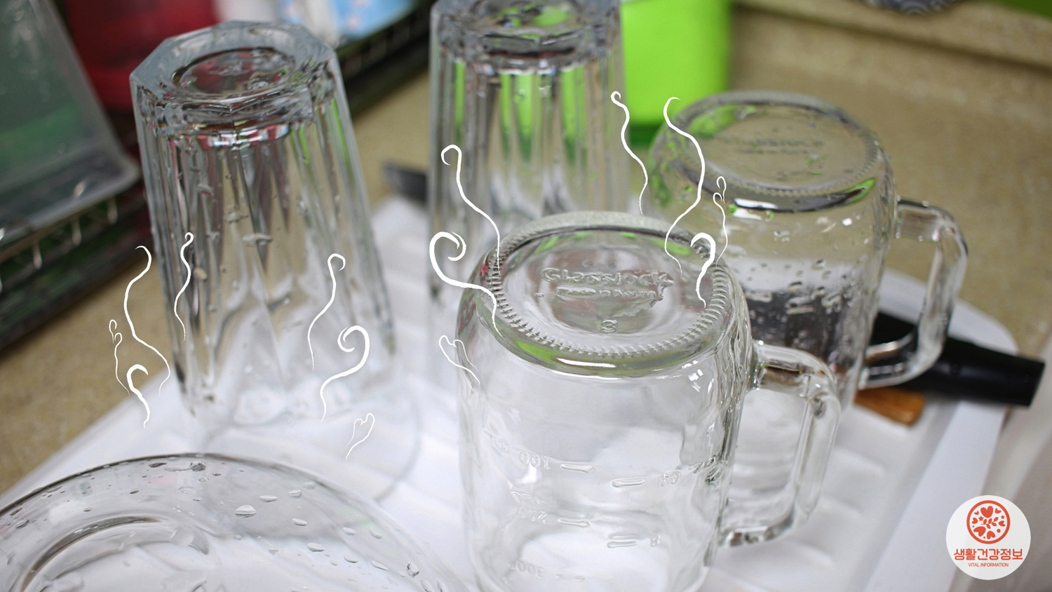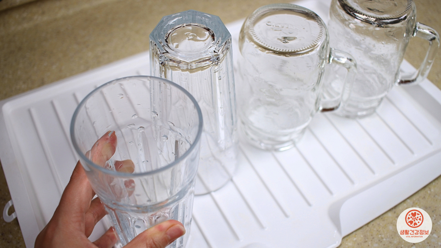 이런날 방금 설거지를 한 물컵에서