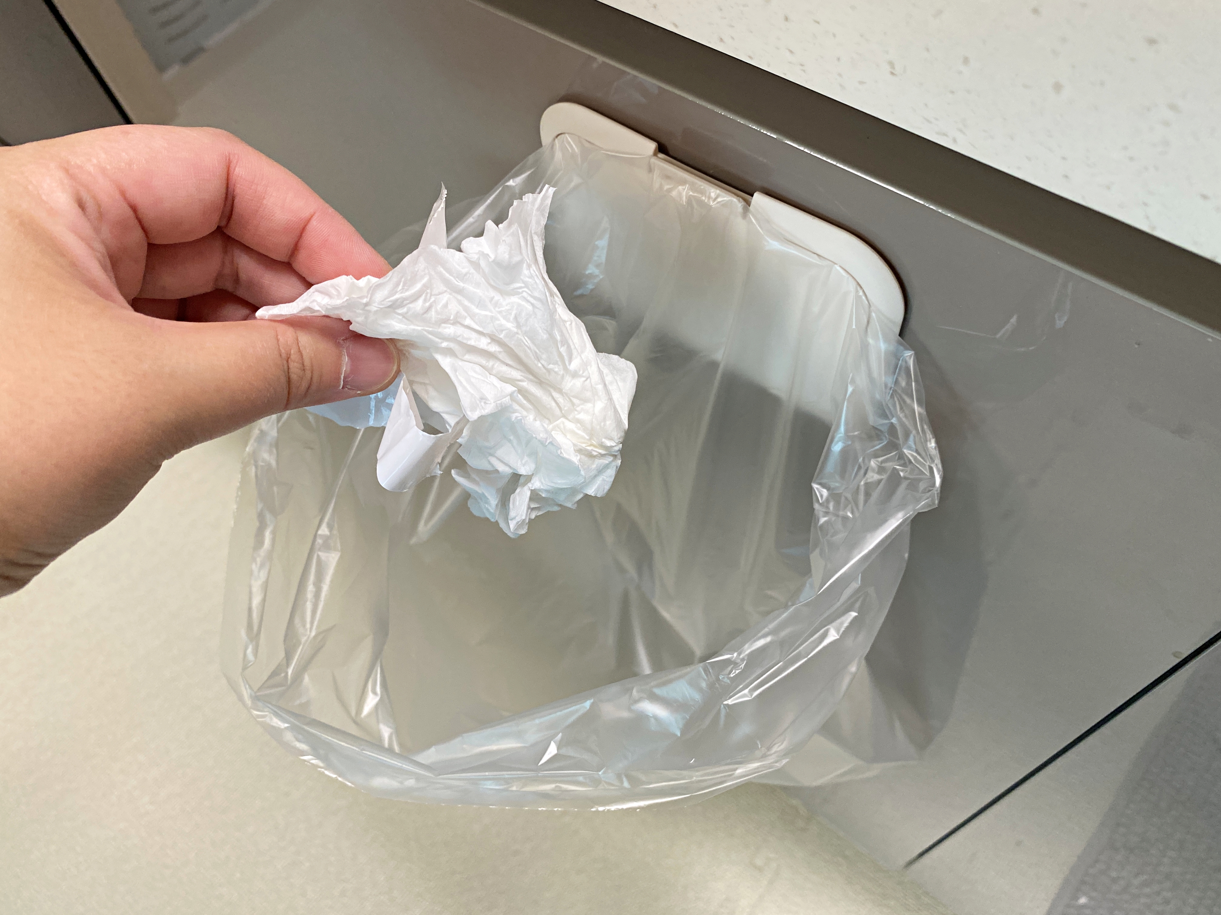 마트에서 대량으로 구입한 일회용장갑, 위생백, 쓰레기봉투 등 보관할 때