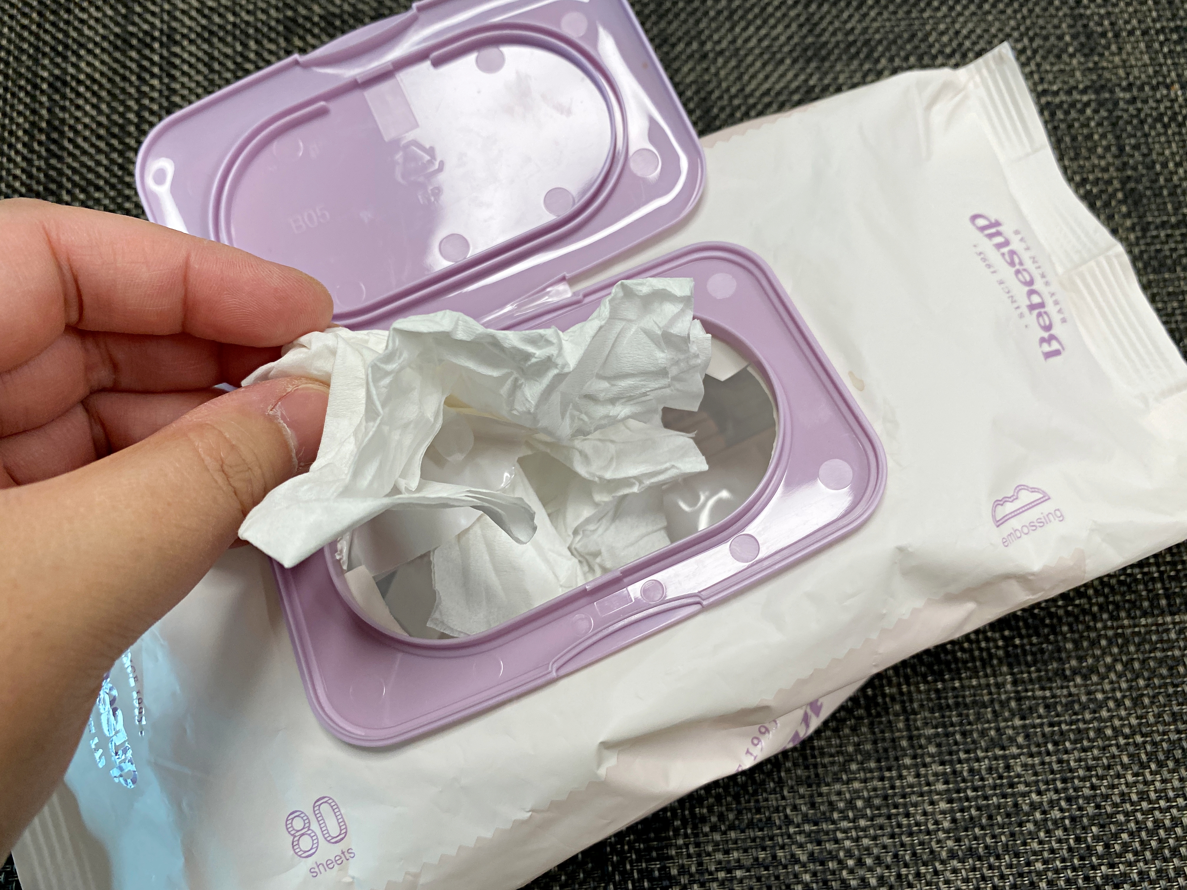 마지막으로 물티슈 다 쓰고 뚜껑 떼어내기 전에