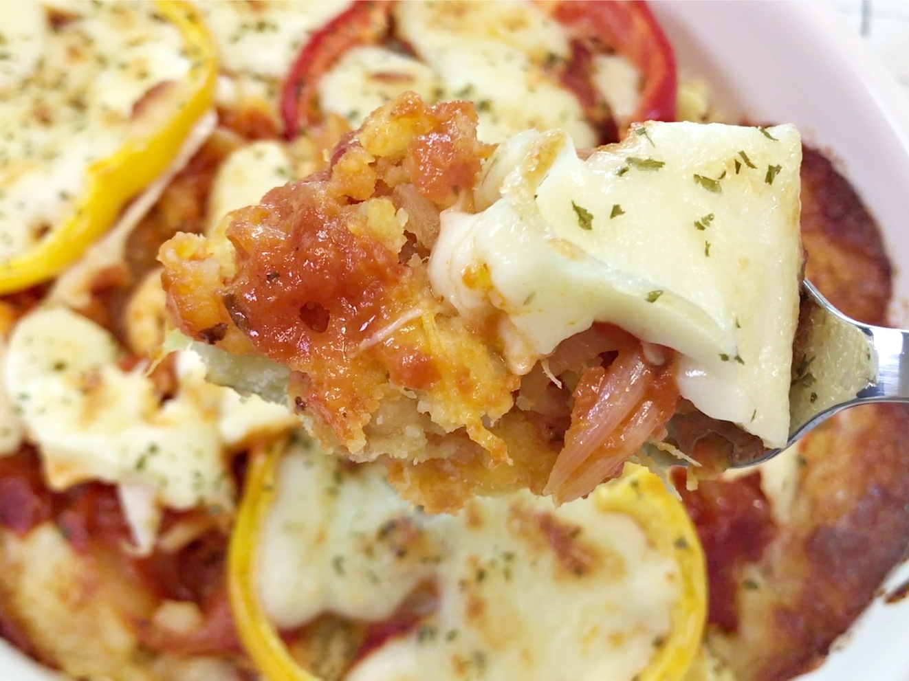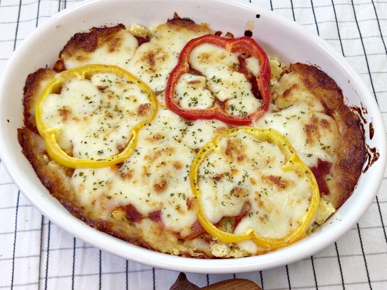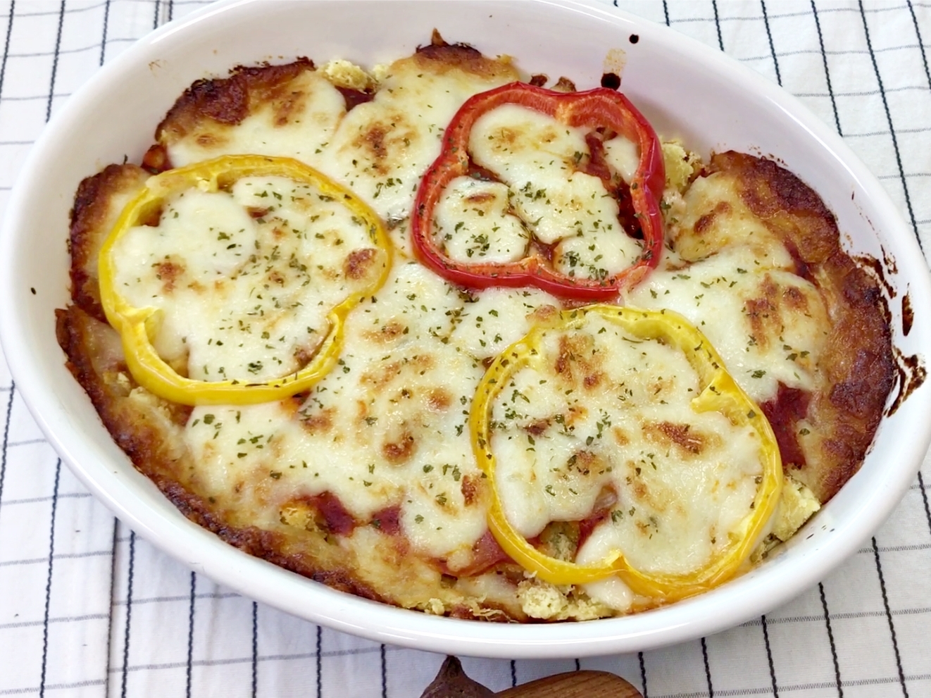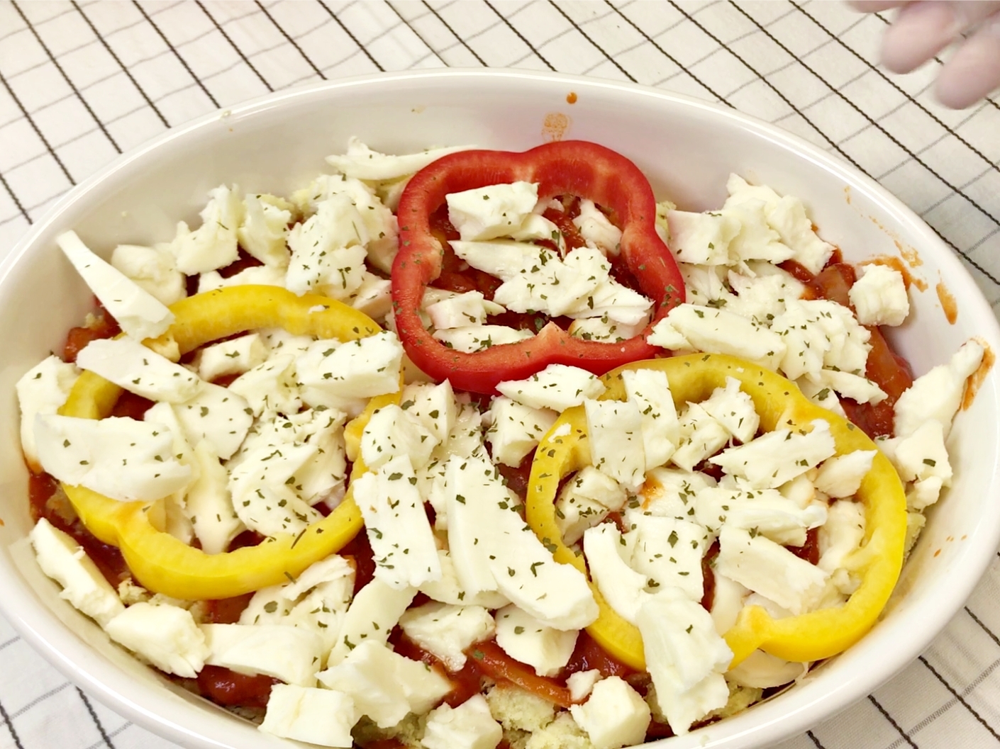고구마, 모짜렐라치즈, 토마토소스, 양파, 파프리카 준비해 주세요.