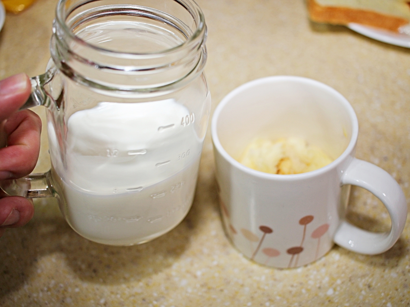 여기에 우유3큰술을 추가해 주세요.