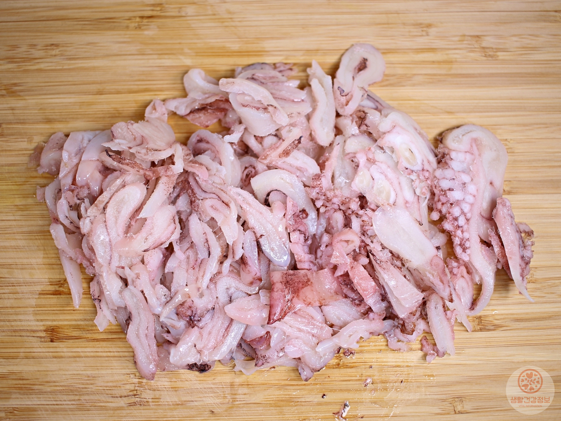 오징어는 손질한 뒤 깨끗하게 씻어서