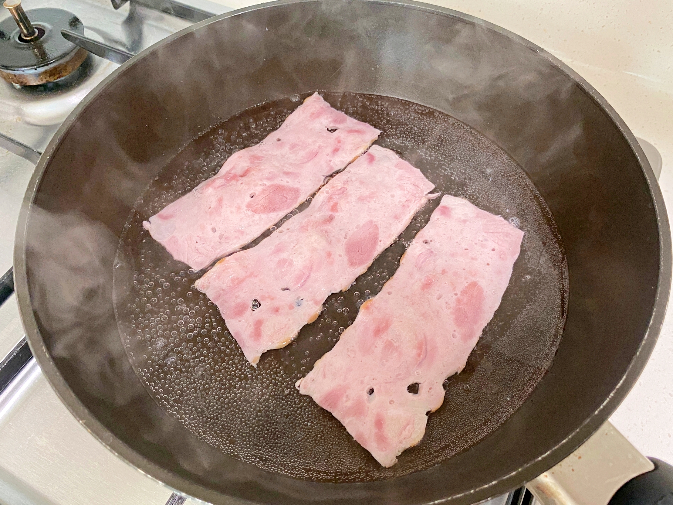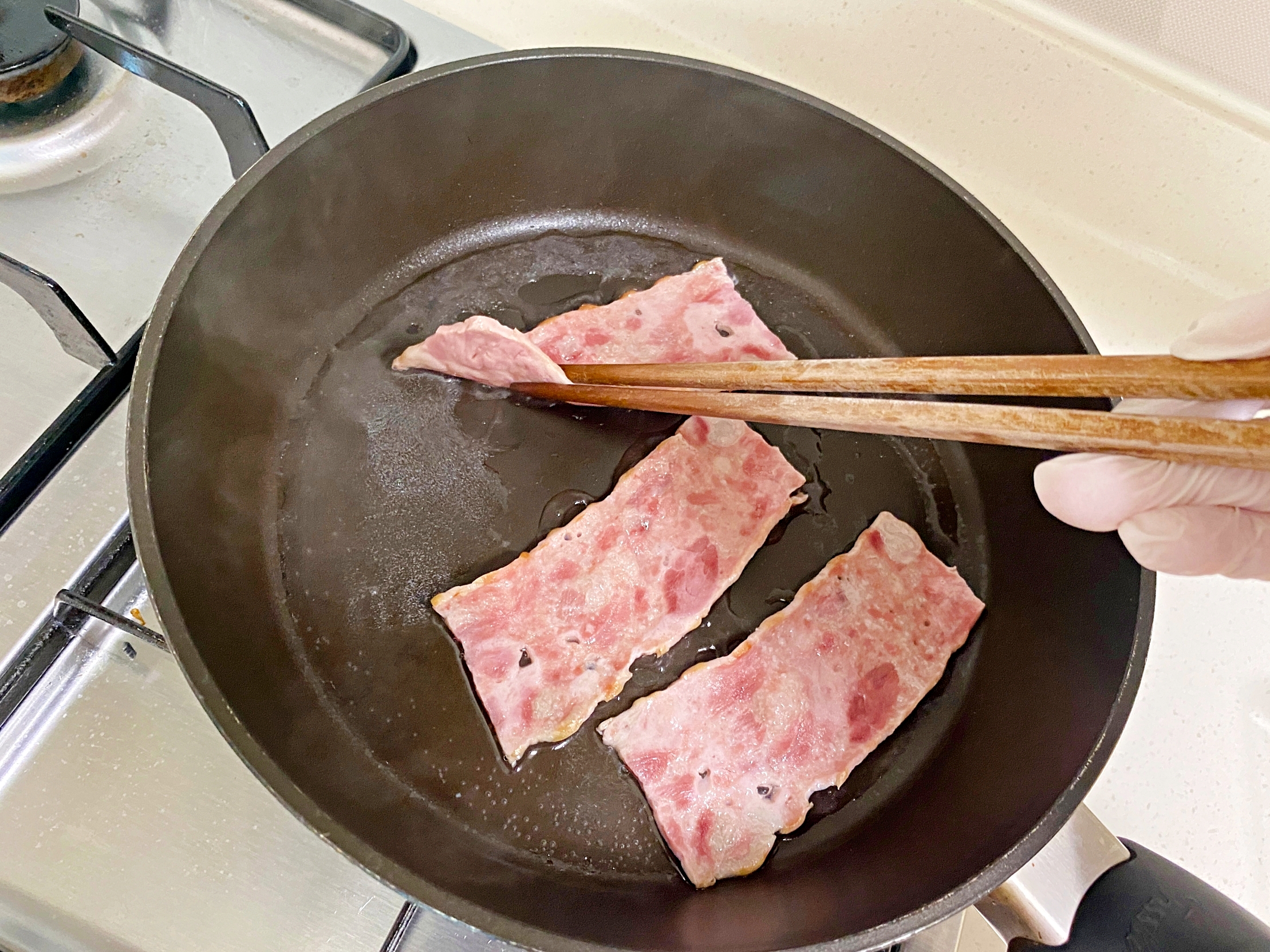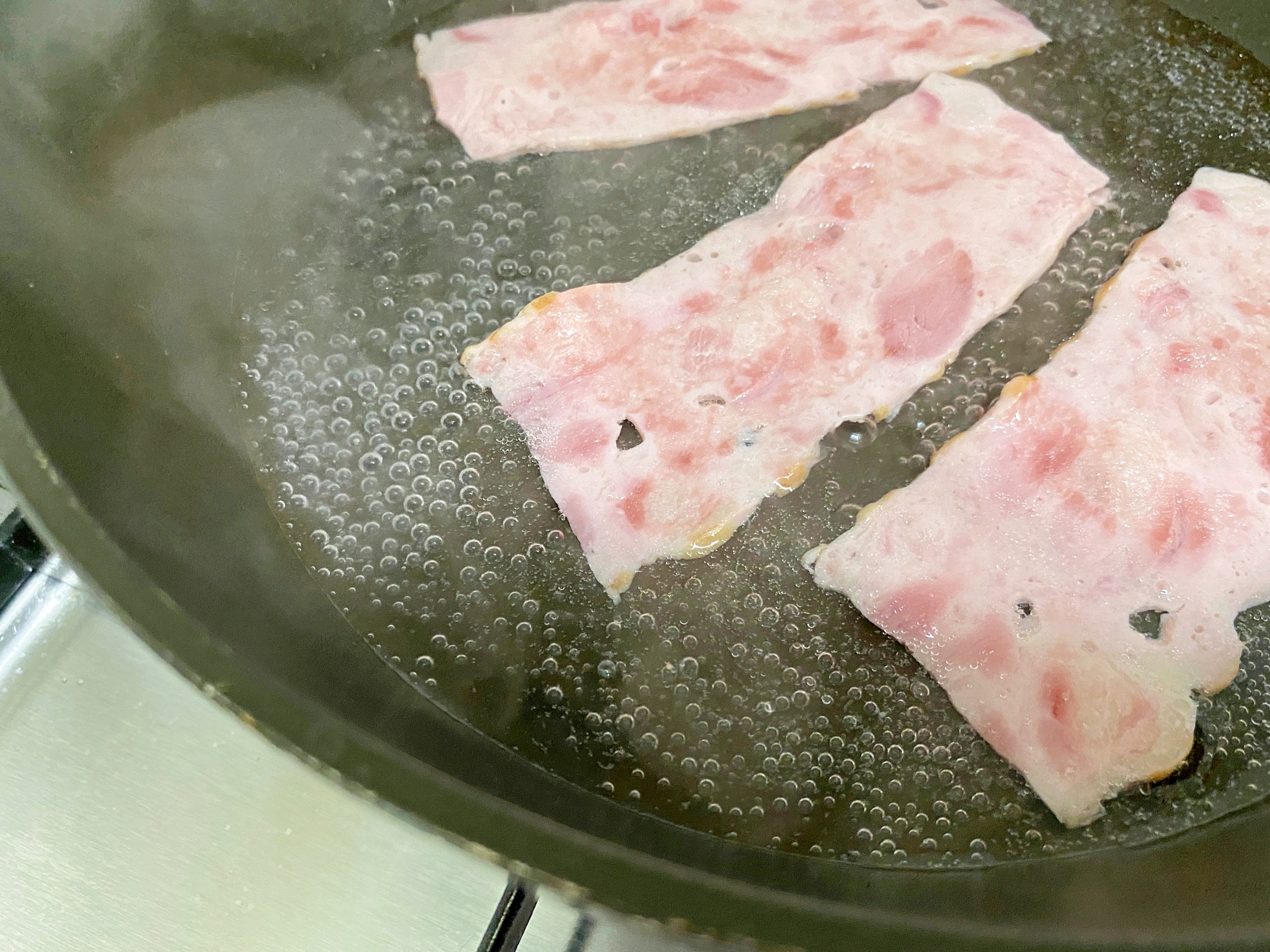 일단 베이컨은 예열하지 않은 팬에서 굽기 시작해야 돼요.