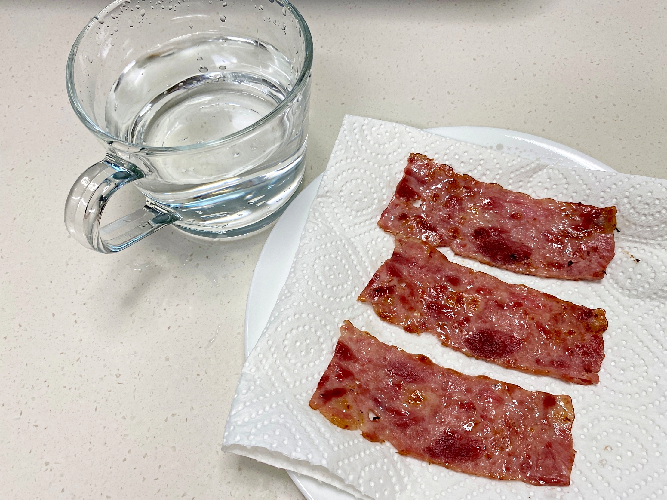 바짝 마르지 않아서 퍽퍽하지 않은 베이컨.