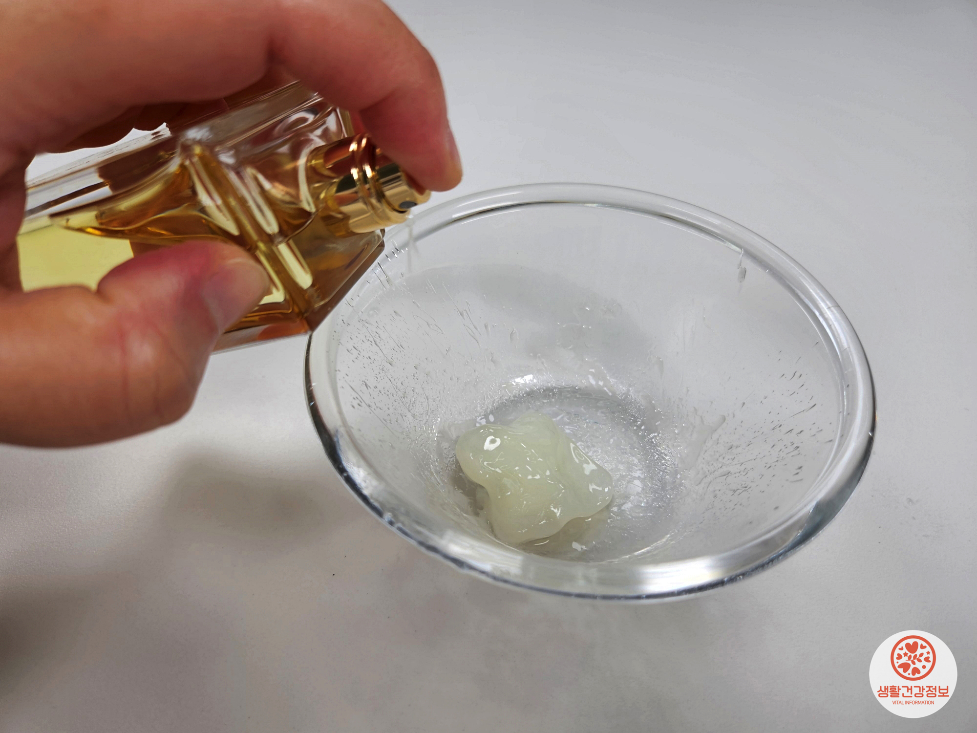 향수를 뿌려서 섞어주세요.