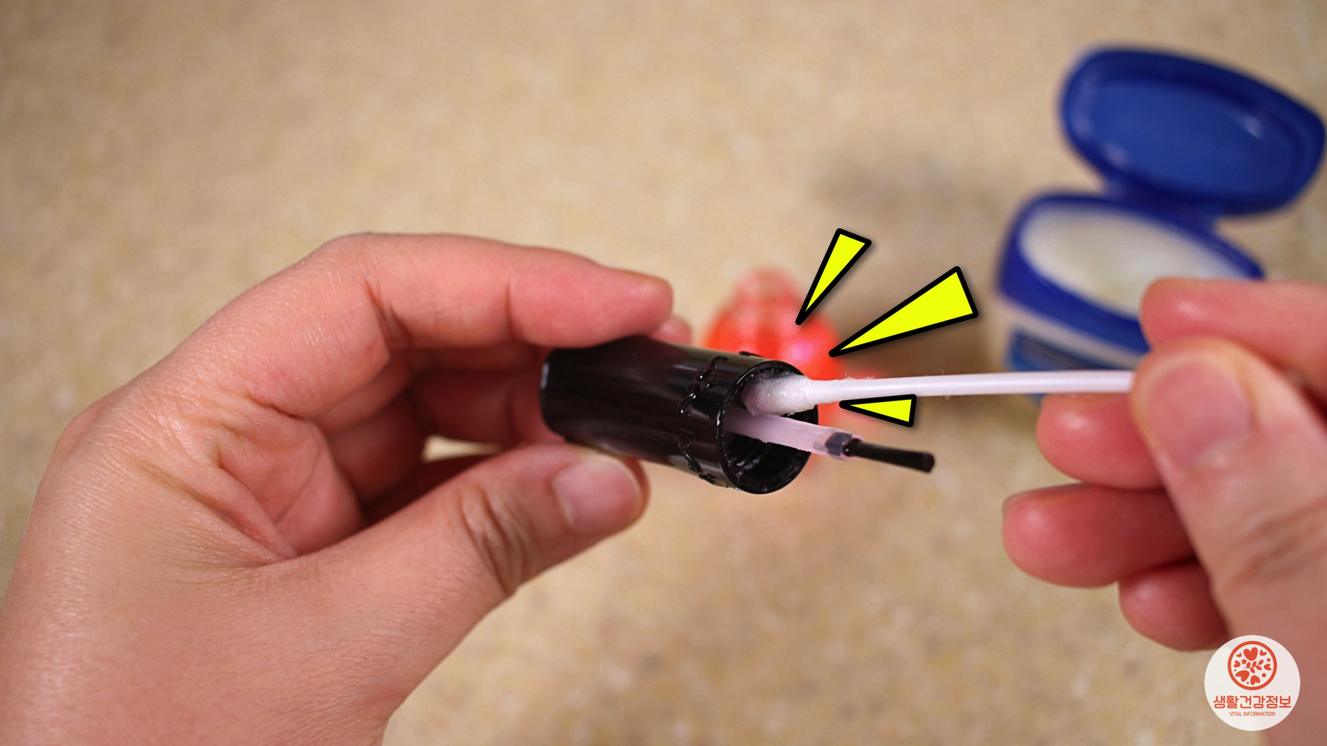 뚜껑에 묻은 매니큐어가 굳지 않게 해줘요.