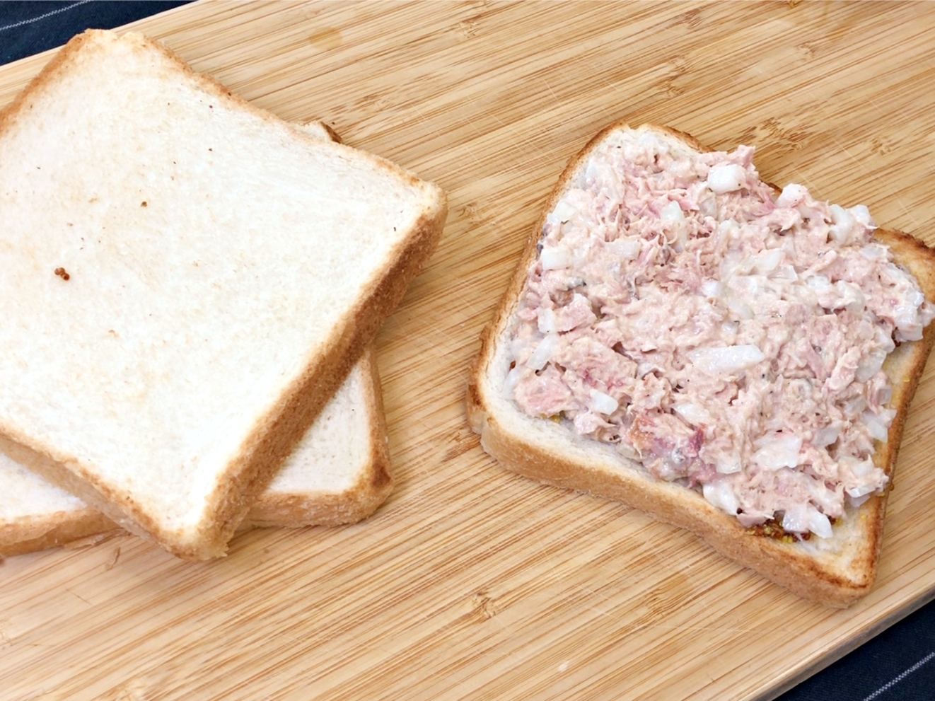 참치샐러드 듬뿍 올리고 식빵으로 덮어주세요.