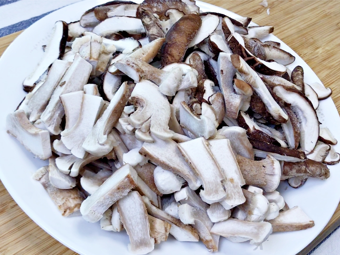표고버섯은 얇지 않게 썰어 식감을 살려주세요.