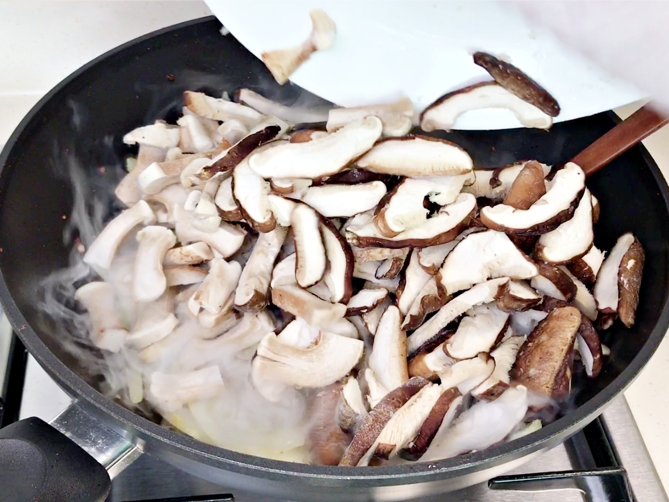 표고버섯은 얇지 않게 썰어 식감을 살려주세요.