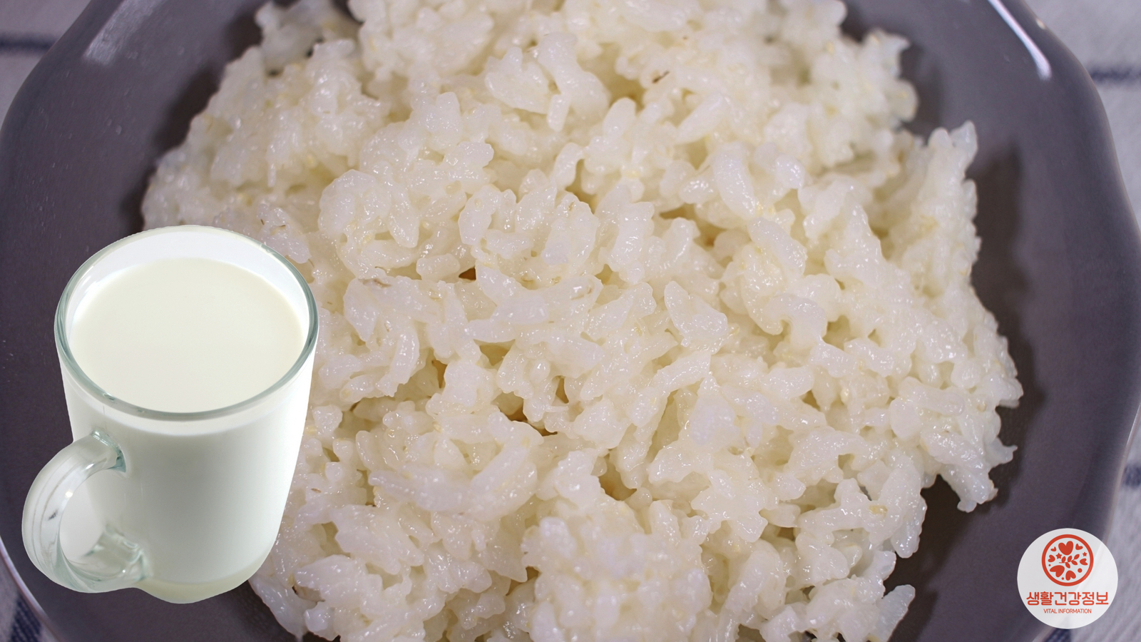 우유를 섞은물로 평상시대로 밥물을 맞춰주세요.