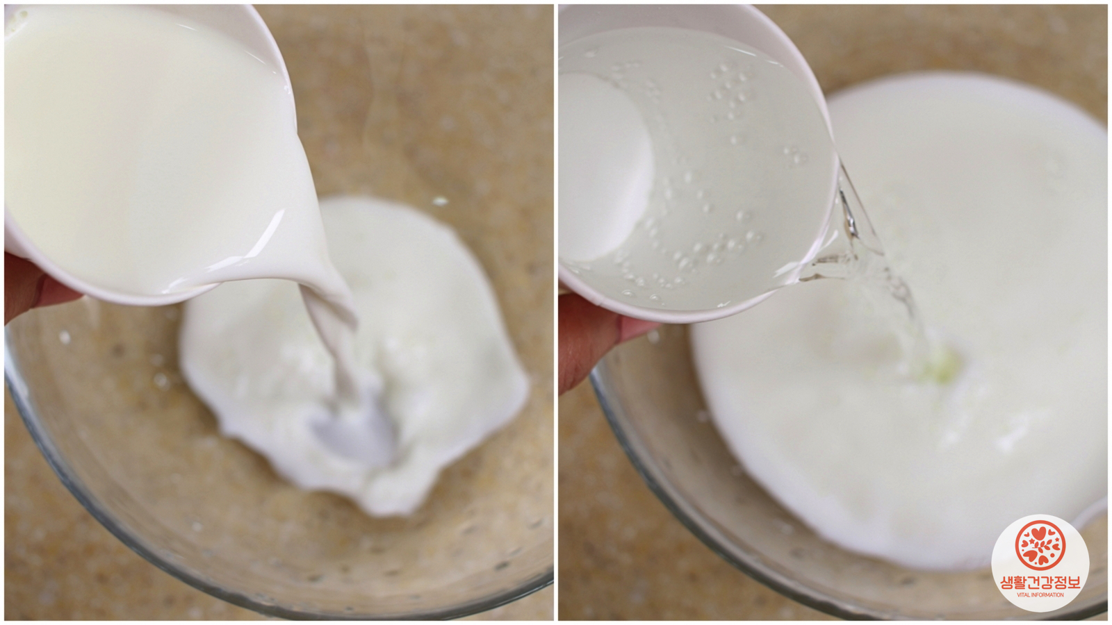 우유1컵과 물3컵을 섞어주기만 하면 끝.